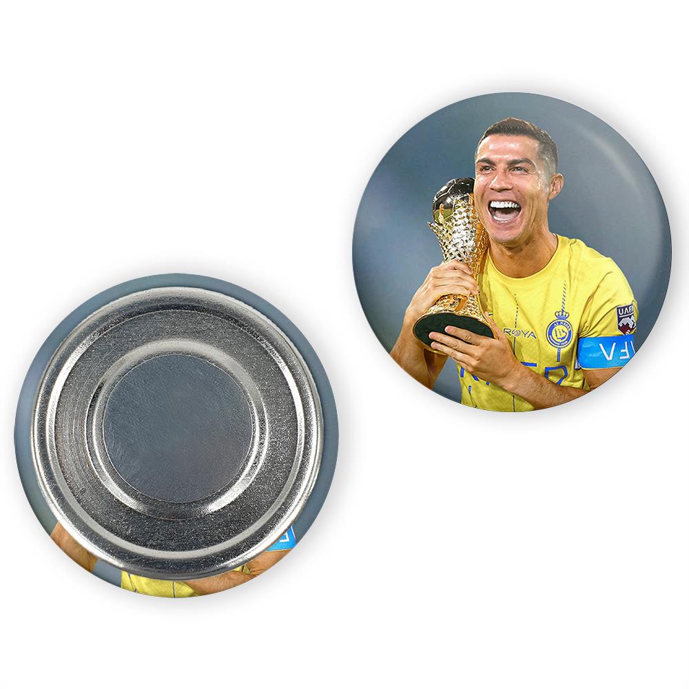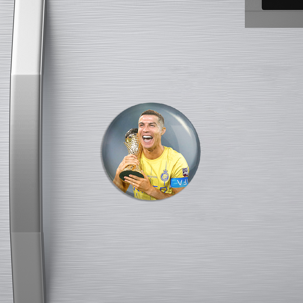 مگنت کریستیانو رونالدو خندالو با روکش سلفون مات مخملی ضدخش و قطعه پشتی فلزی تولید شده است که آهنربای اتمی بکار برده شده در محصول، بصورت مخفی تعبیه شده ودیده نمی شود. ضمن اینکه گیرایی بسیار بالایی داشته و به هیچ عنوان از روی یخچال نمی افتد.