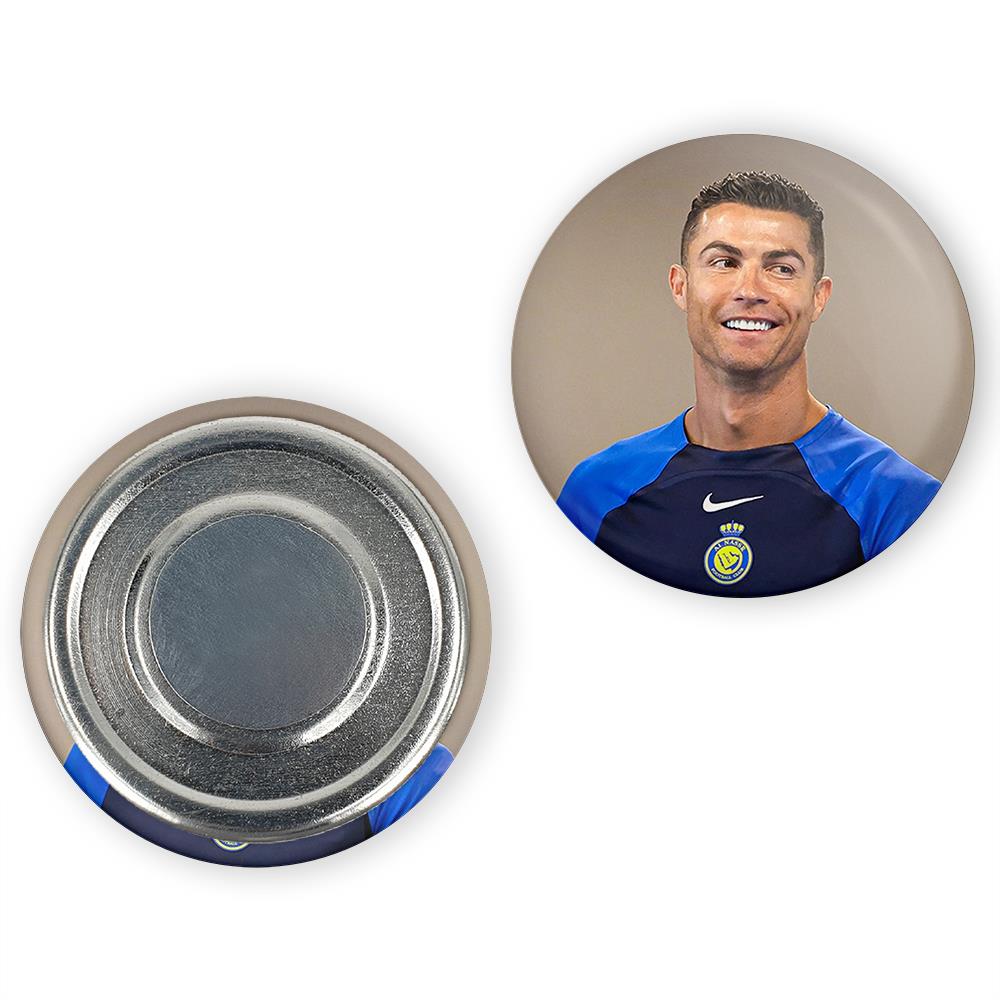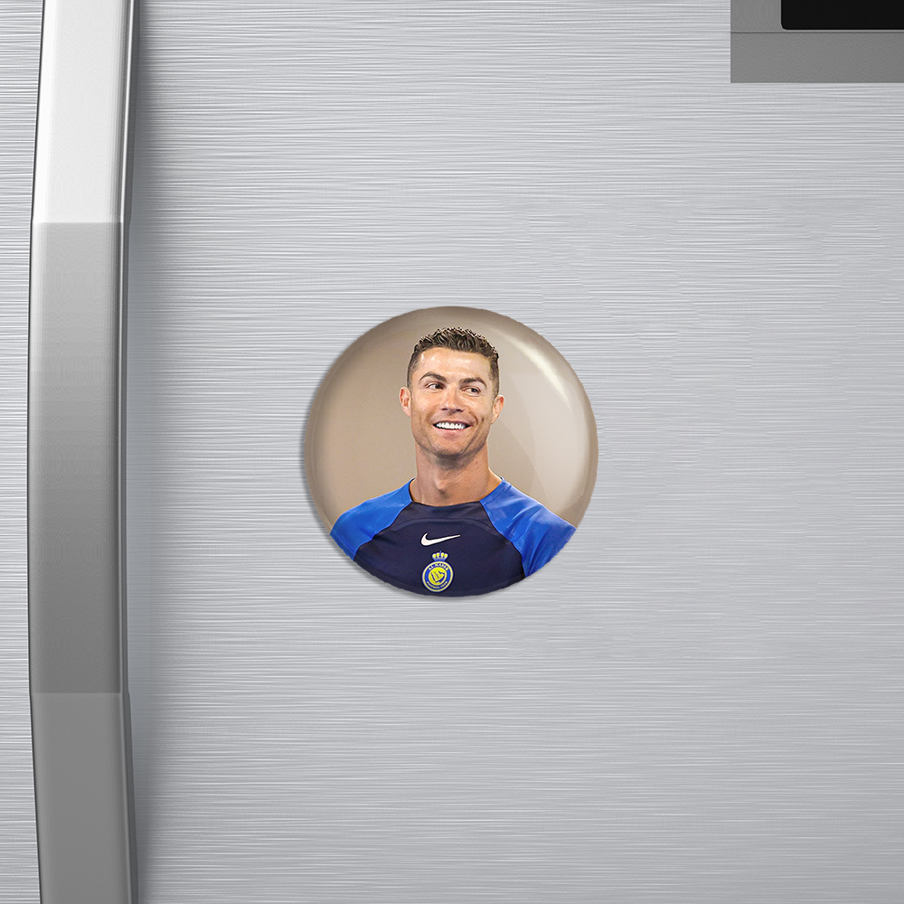 مگنت کریستیانو رونالدو خندالو با روکش سلفون مات مخملی ضدخش و قطعه پشتی فلزی تولید شده است که آهنربای اتمی بکار برده شده در محصول، بصورت مخفی تعبیه شده ودیده نمی شود. ضمن اینکه گیرایی بسیار بالایی داشته و به هیچ عنوان از روی یخچال نمی افتد.