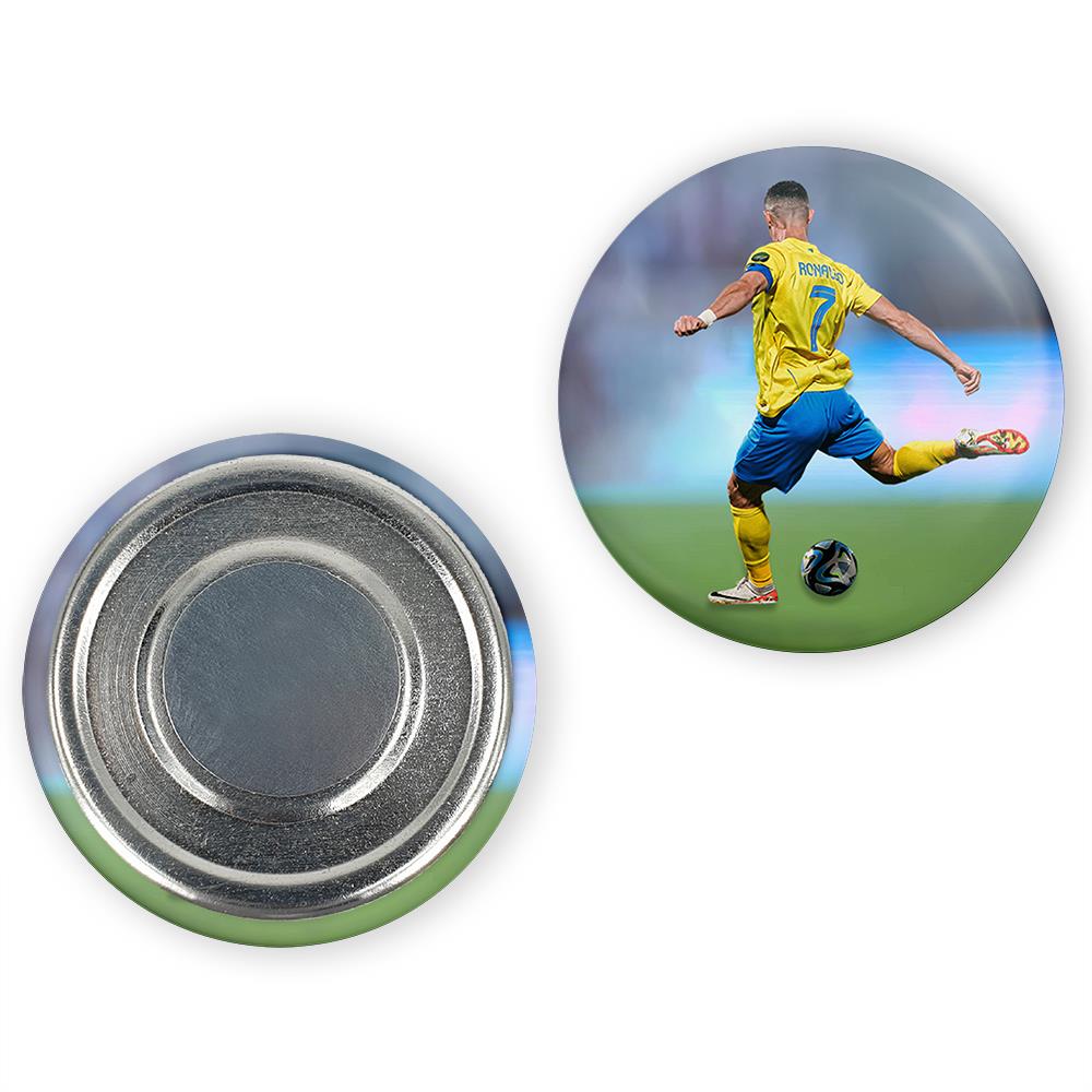 مگنت کریستیانو رونالدو خندالو با روکش سلفون مات مخملی ضدخش و قطعه پشتی فلزی تولید شده است که آهنربای اتمی بکار برده شده در محصول، بصورت مخفی تعبیه شده ودیده نمی شود. ضمن اینکه گیرایی بسیار بالایی داشته و به هیچ عنوان از روی یخچال نمی افتد.