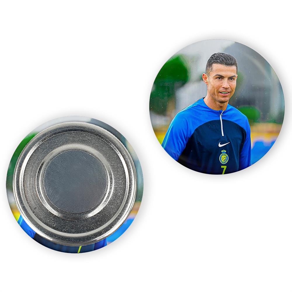 مگنت کریستیانو رونالدو خندالو با روکش سلفون مات مخملی ضدخش و قطعه پشتی فلزی تولید شده است که آهنربای اتمی بکار برده شده در محصول، بصورت مخفی تعبیه شده ودیده نمی شود. ضمن اینکه گیرایی بسیار بالایی داشته و به هیچ عنوان از روی یخچال نمی افتد.