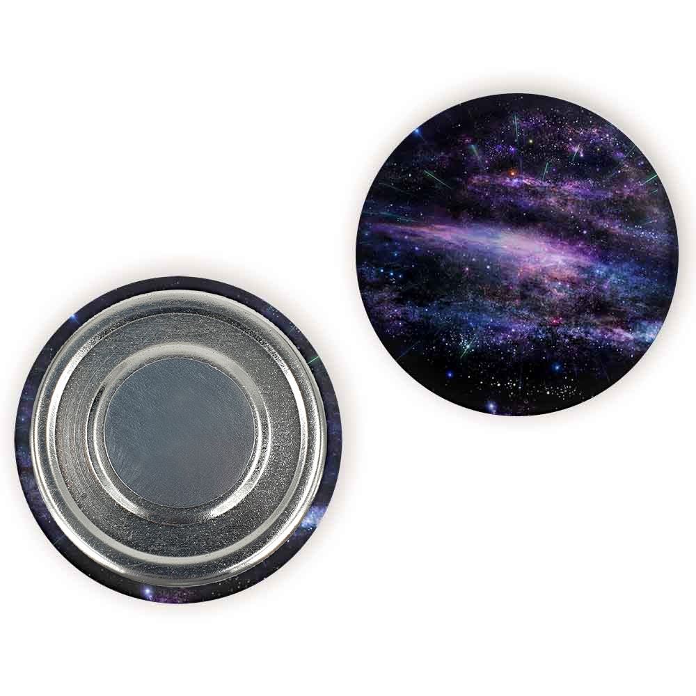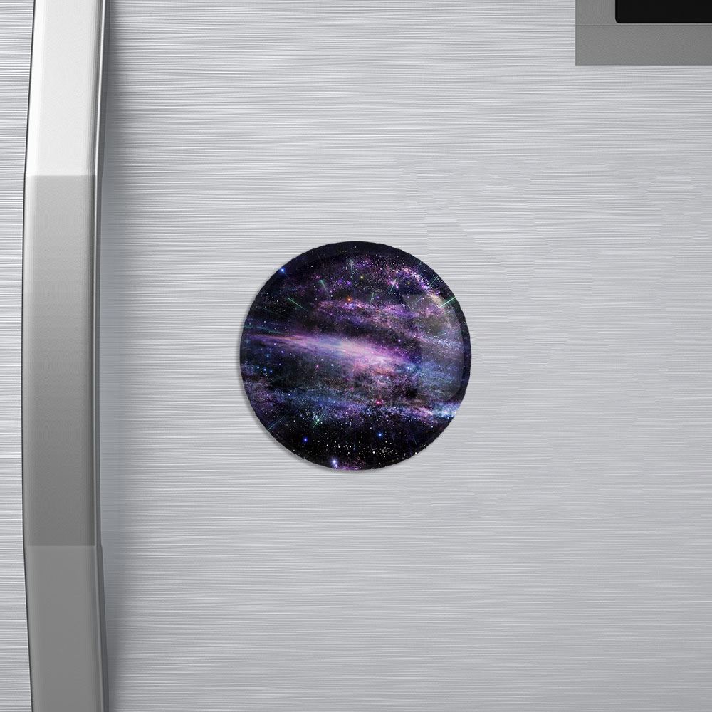 مگنت کهکشان و سیاره ها خندالو با روکش سلفون مات مخملی ضدخش و قطعه پشتی فلزی تولید شده است که آهنربای اتمی بکار برده شده در محصول، بصورت مخفی تعبیه شده ودیده نمی شود. ضمن اینکه گیرایی بسیار بالایی داشته و به هیچ عنوان از روی یخچال نمی افتد.