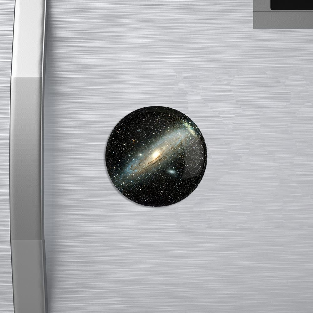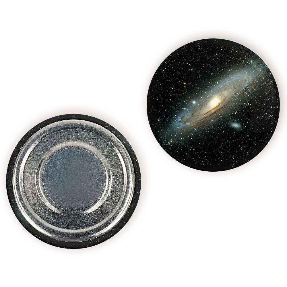 مگنت کهکشان و سیاره ها خندالو با روکش سلفون مات مخملی ضدخش و قطعه پشتی فلزی تولید شده است که آهنربای اتمی بکار برده شده در محصول، بصورت مخفی تعبیه شده ودیده نمی شود. ضمن اینکه گیرایی بسیار بالایی داشته و به هیچ عنوان از روی یخچال نمی افتد.