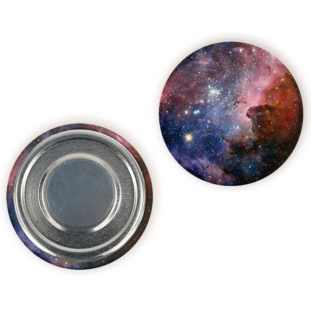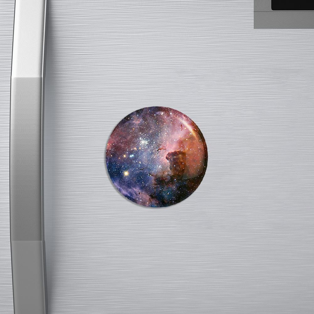 مگنت کهکشان و سیاره ها خندالو با روکش سلفون مات مخملی ضدخش و قطعه پشتی فلزی تولید شده است که آهنربای اتمی بکار برده شده در محصول، بصورت مخفی تعبیه شده ودیده نمی شود. ضمن اینکه گیرایی بسیار بالایی داشته و به هیچ عنوان از روی یخچال نمی افتد.