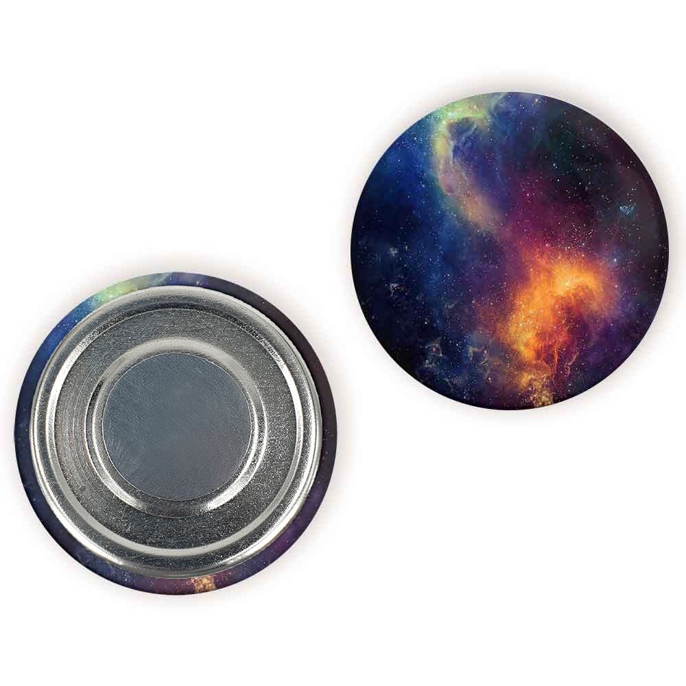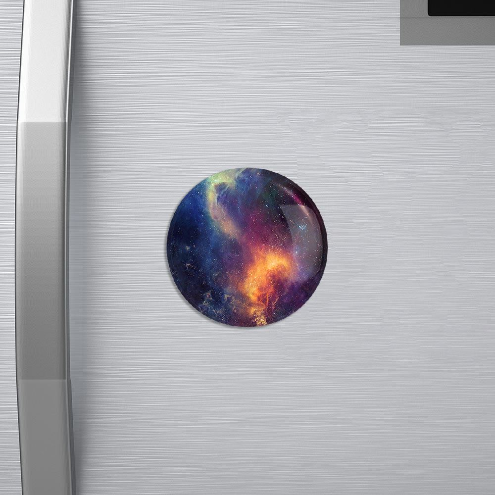 مگنت کهکشان و سیاره ها خندالو با روکش سلفون مات مخملی ضدخش و قطعه پشتی فلزی تولید شده است که آهنربای اتمی بکار برده شده در محصول، بصورت مخفی تعبیه شده ودیده نمی شود. ضمن اینکه گیرایی بسیار بالایی داشته و به هیچ عنوان از روی یخچال نمی افتد.