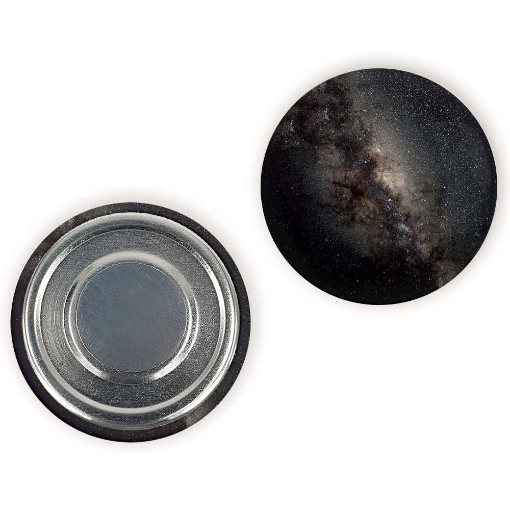 مگنت کهکشان و سیاره ها خندالو با روکش سلفون مات مخملی ضدخش و قطعه پشتی فلزی تولید شده است که آهنربای اتمی بکار برده شده در محصول، بصورت مخفی تعبیه شده ودیده نمی شود. ضمن اینکه گیرایی بسیار بالایی داشته و به هیچ عنوان از روی یخچال نمی افتد.