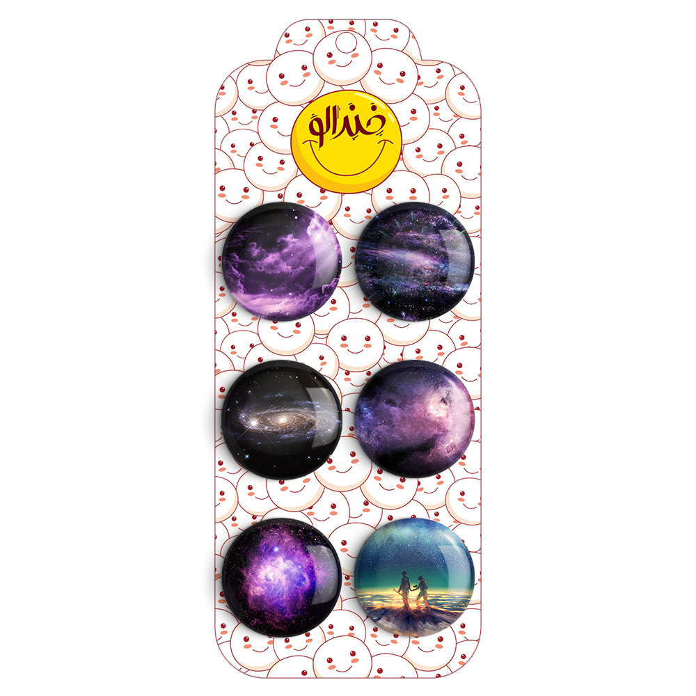 پک 6 عددی مگنت یخچال خندالو طرح کهکشان با روکش سلفون مات حرارتی مخملی ضدخش و قطعه پشتی فلزی تولید شده است که آهنربای اتمی بکار برده شده در محصول، بصورت مخفی تعبیه شده ودیده نمی شود. ضمن اینکه گیرایی بسیار بالایی داشته و به هیچ عنوان از روی یخچال نمی افتد. نکته مهم این است که به دلیل مخفی بودن آهنربا، هیچگونه خط و خش و زدگی بر روی یخچال ایجاد نخواهد شد.