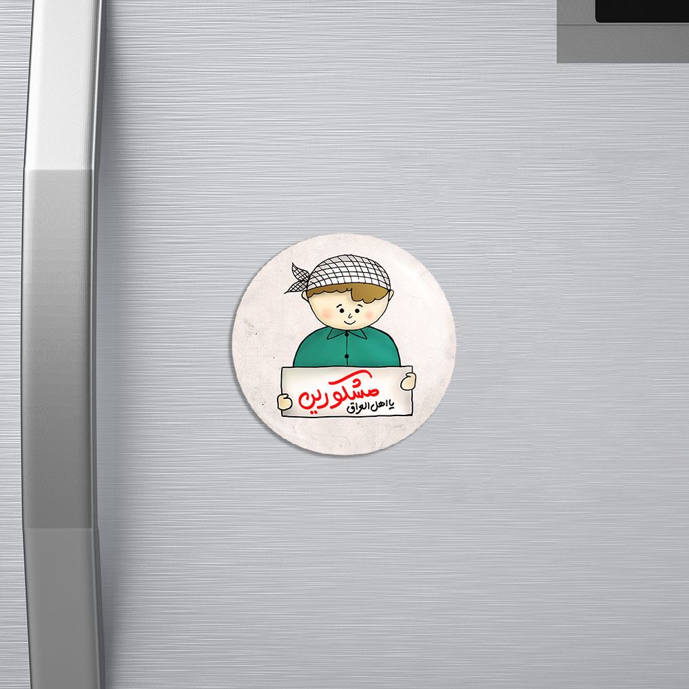 مگنت کودکانه محرم و اربعین امام حسین خندالو با روکش سلفون مات مخملی ضدخش و قطعه پشتی فلزی تولید شده است که آهنربای اتمی بکار برده شده در محصول، بصورت مخفی تعبیه شده ودیده نمی شود. ضمن اینکه گیرایی بسیار بالایی داشته و به هیچ عنوان از روی یخچال نمی افتد.