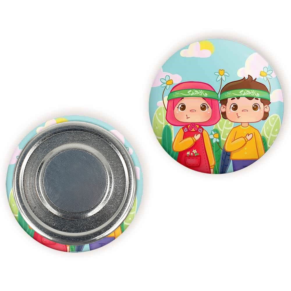 مگنت کودکانه محرم و اربعین امام حسین خندالو با روکش سلفون مات مخملی ضدخش و قطعه پشتی فلزی تولید شده است که آهنربای اتمی بکار برده شده در محصول، بصورت مخفی تعبیه شده ودیده نمی شود. ضمن اینکه گیرایی بسیار بالایی داشته و به هیچ عنوان از روی یخچال نمی افتد.