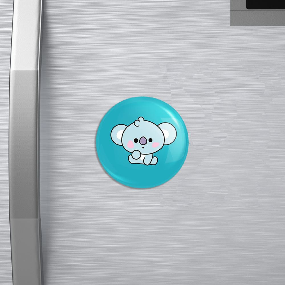 مگنت کویا BT21 Koya خندالو با روکش سلفون مات مخملی ضدخش و قطعه پشتی فلزی تولید شده است که آهنربای اتمی بکار برده شده در محصول، بصورت مخفی تعبیه شده ودیده نمی شود. ضمن اینکه گیرایی بسیار بالایی داشته و به هیچ عنوان از روی یخچال نمی افتد.