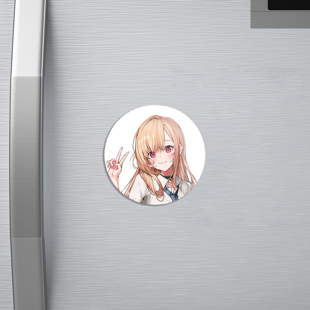 مگنت کیتاگاوا انیمه مای درس آپ دارلینگ خندالو با روکش سلفون مات مخملی ضدخش و قطعه پشتی فلزی تولید شده است که آهنربای اتمی بکار برده شده در محصول، بصورت مخفی تعبیه شده ودیده نمی شود. ضمن اینکه گیرایی بسیار بالایی داشته و به هیچ عنوان از روی یخچال نمی افتد.
