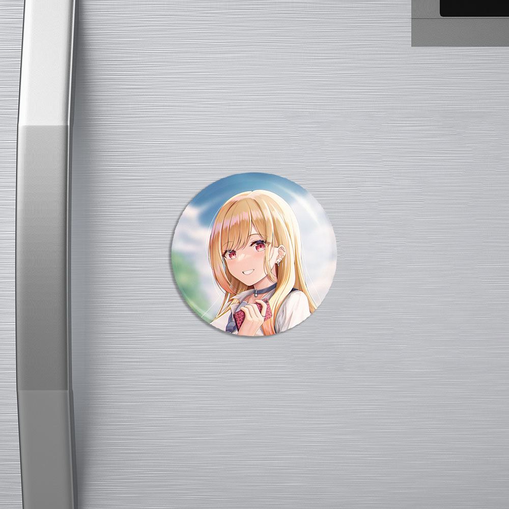 مگنت کیتاگاوا انیمه مای درس آپ دارلینگ خندالو با روکش سلفون مات مخملی ضدخش و قطعه پشتی فلزی تولید شده است که آهنربای اتمی بکار برده شده در محصول، بصورت مخفی تعبیه شده ودیده نمی شود. ضمن اینکه گیرایی بسیار بالایی داشته و به هیچ عنوان از روی یخچال نمی افتد.