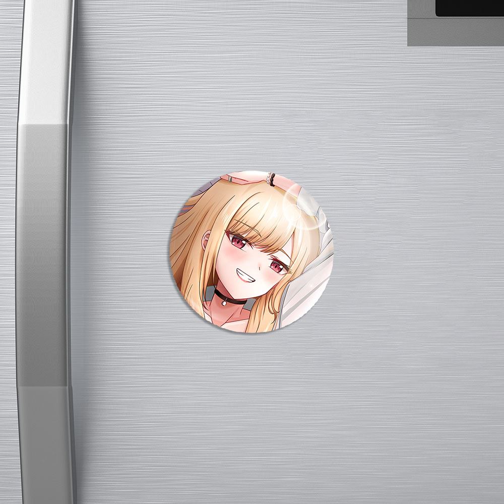 مگنت کیتاگاوا انیمه مای درس آپ دارلینگ خندالو با روکش سلفون مات مخملی ضدخش و قطعه پشتی فلزی تولید شده است که آهنربای اتمی بکار برده شده در محصول، بصورت مخفی تعبیه شده ودیده نمی شود. ضمن اینکه گیرایی بسیار بالایی داشته و به هیچ عنوان از روی یخچال نمی افتد.
