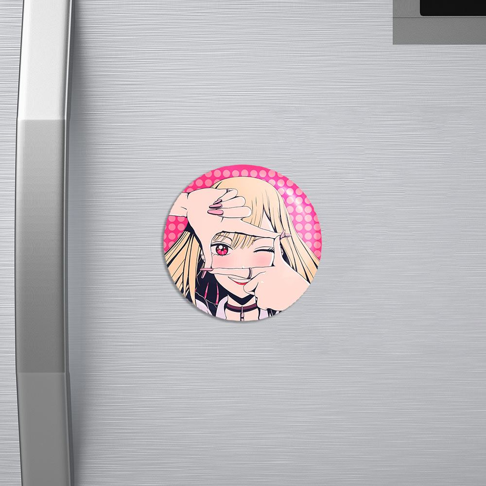 مگنت کیتاگاوا انیمه مای درس آپ دارلینگ خندالو با روکش سلفون مات مخملی ضدخش و قطعه پشتی فلزی تولید شده است که آهنربای اتمی بکار برده شده در محصول، بصورت مخفی تعبیه شده ودیده نمی شود. ضمن اینکه گیرایی بسیار بالایی داشته و به هیچ عنوان از روی یخچال نمی افتد.