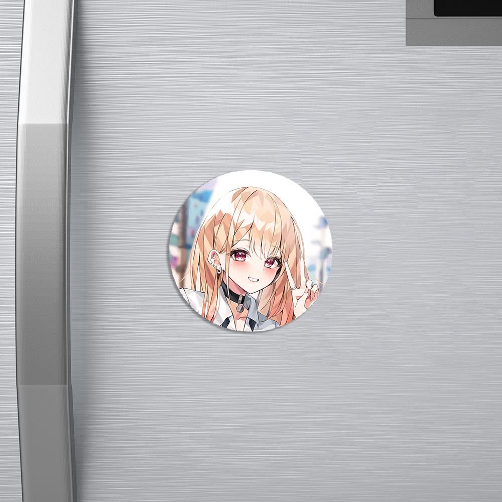 مگنت کیتاگاوا انیمه مای درس آپ دارلینگ خندالو با روکش سلفون مات مخملی ضدخش و قطعه پشتی فلزی تولید شده است که آهنربای اتمی بکار برده شده در محصول، بصورت مخفی تعبیه شده ودیده نمی شود. ضمن اینکه گیرایی بسیار بالایی داشته و به هیچ عنوان از روی یخچال نمی افتد.