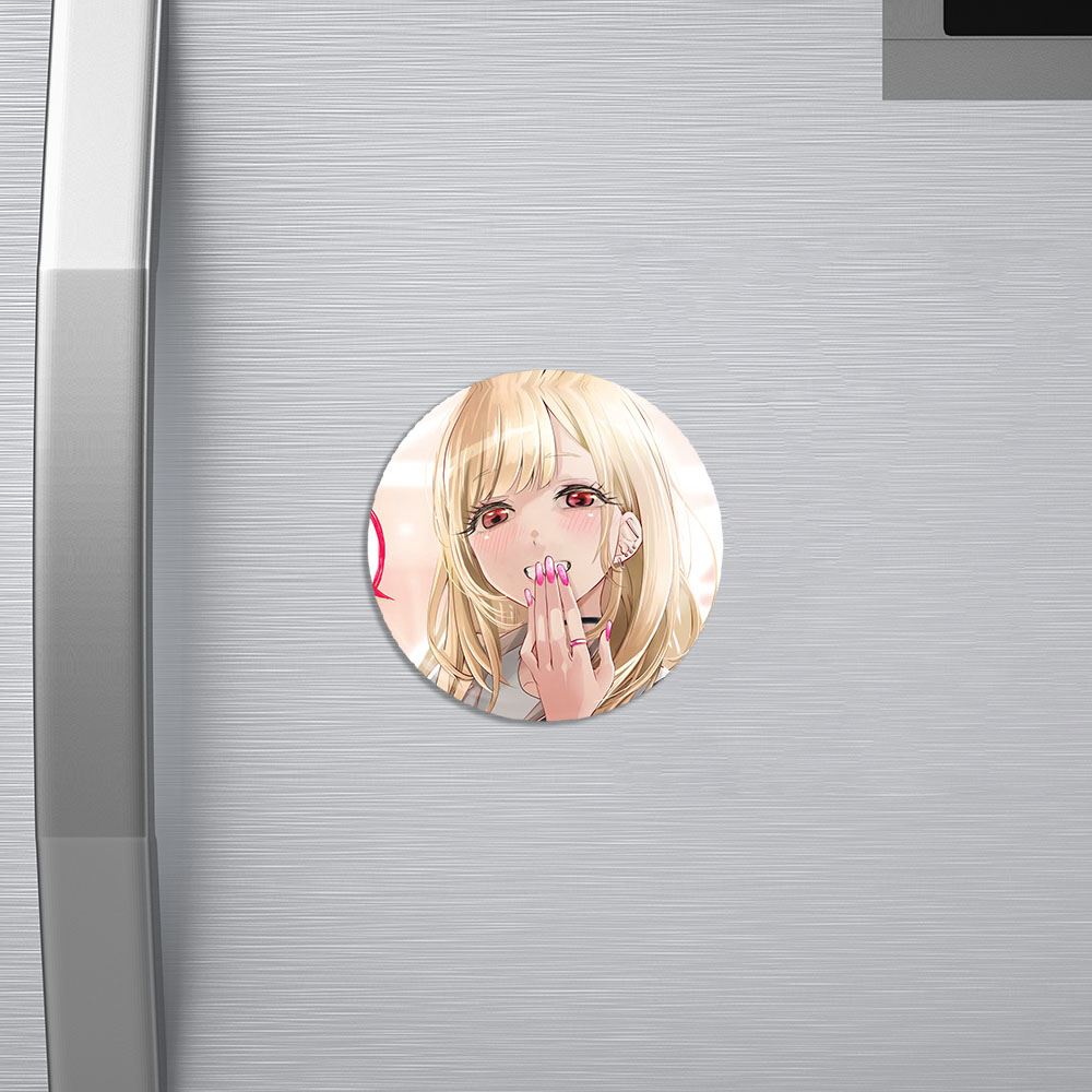 مگنت کیتاگاوا انیمه مای درس آپ دارلینگ خندالو با روکش سلفون مات مخملی ضدخش و قطعه پشتی فلزی تولید شده است که آهنربای اتمی بکار برده شده در محصول، بصورت مخفی تعبیه شده ودیده نمی شود. ضمن اینکه گیرایی بسیار بالایی داشته و به هیچ عنوان از روی یخچال نمی افتد.