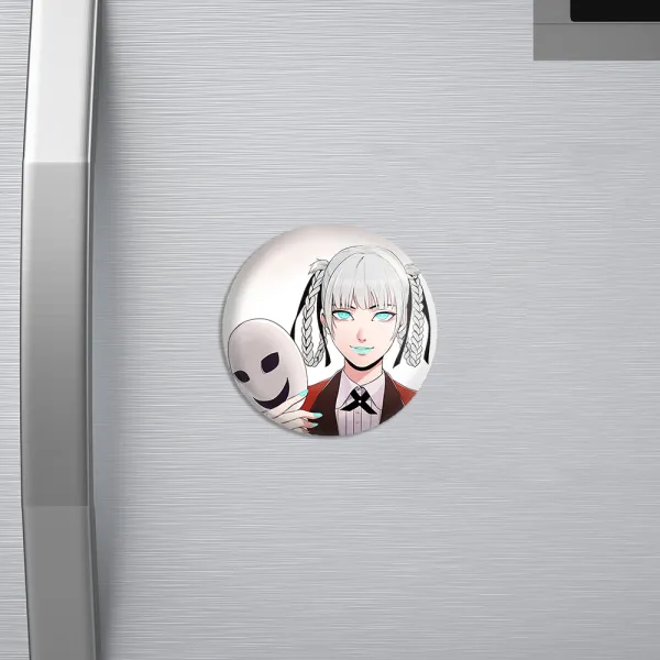 مگنت کیراری انیمه قمارباز خندالو با روکش سلفون مات مخملی ضدخش و قطعه پشتی فلزی تولید شده است که آهنربای اتمی بکار برده شده در محصول، بصورت مخفی تعبیه شده ودیده نمی شود. ضمن اینکه گیرایی بسیار بالایی داشته و به هیچ عنوان از روی یخچال نمی افتد.