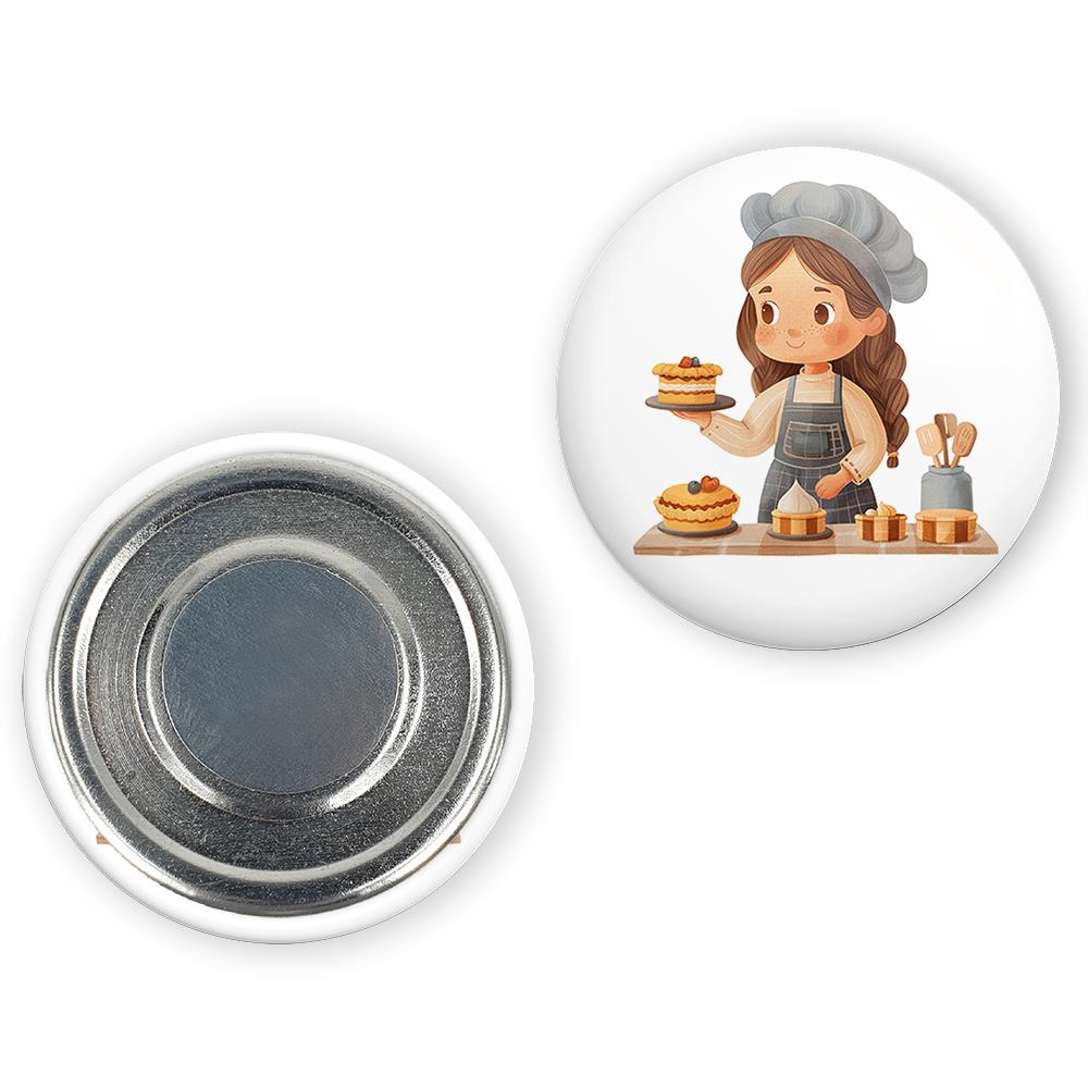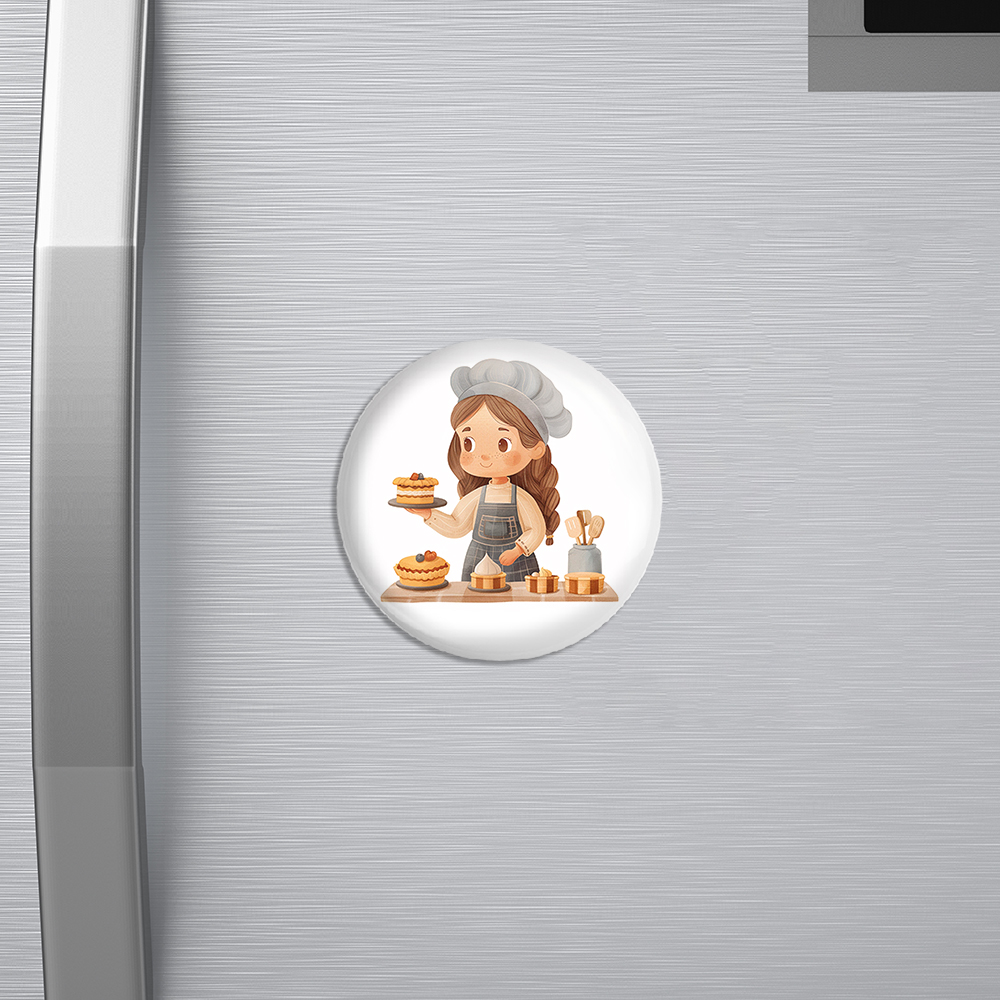 مگنت کیک و شیرینی پزی خندالو با روکش سلفون مات مخملی ضدخش و قطعه پشتی فلزی تولید شده است که آهنربای اتمی بکار برده شده در محصول، بصورت مخفی تعبیه شده ودیده نمی شود. ضمن اینکه گیرایی بسیار بالایی داشته و به هیچ عنوان از روی یخچال نمی افتد.