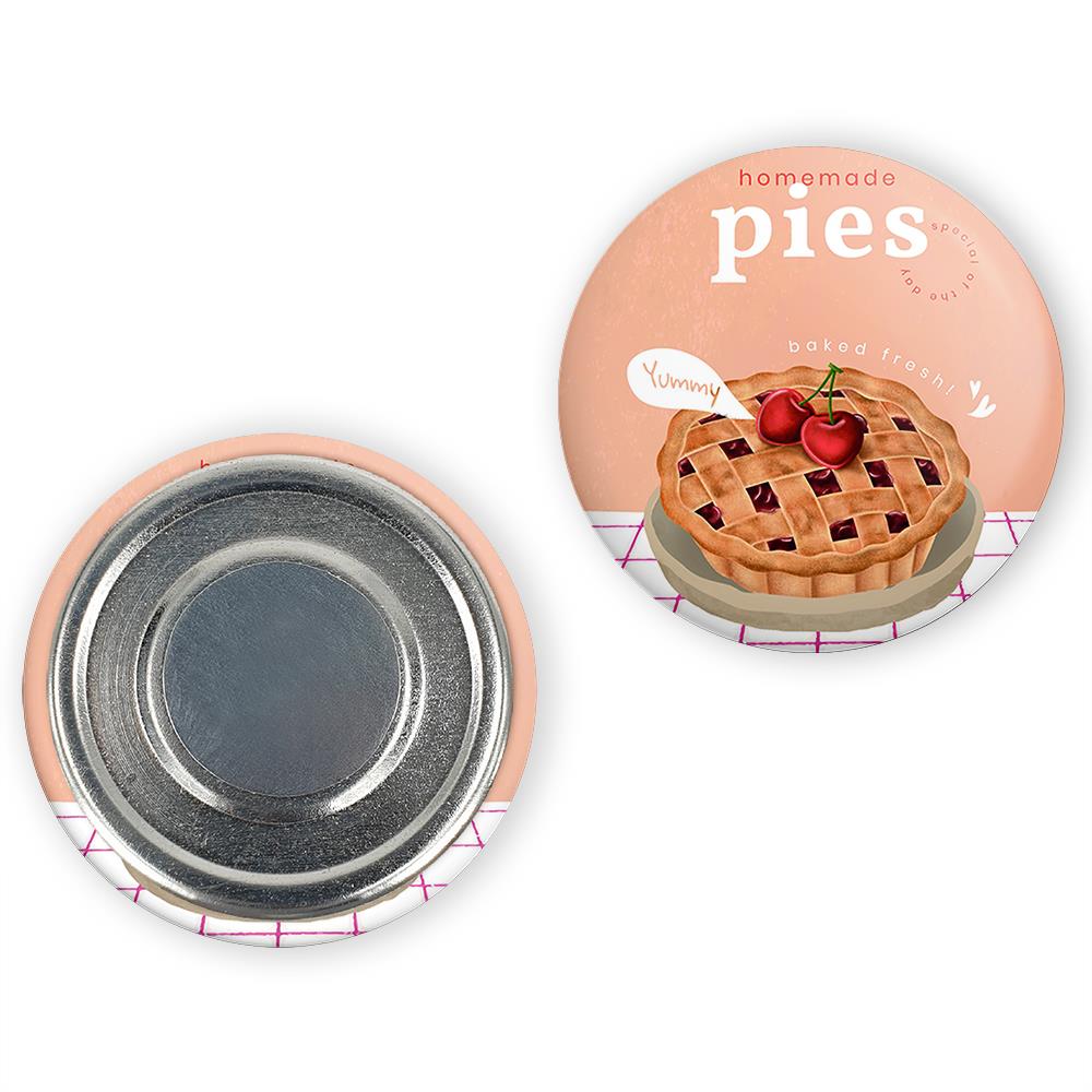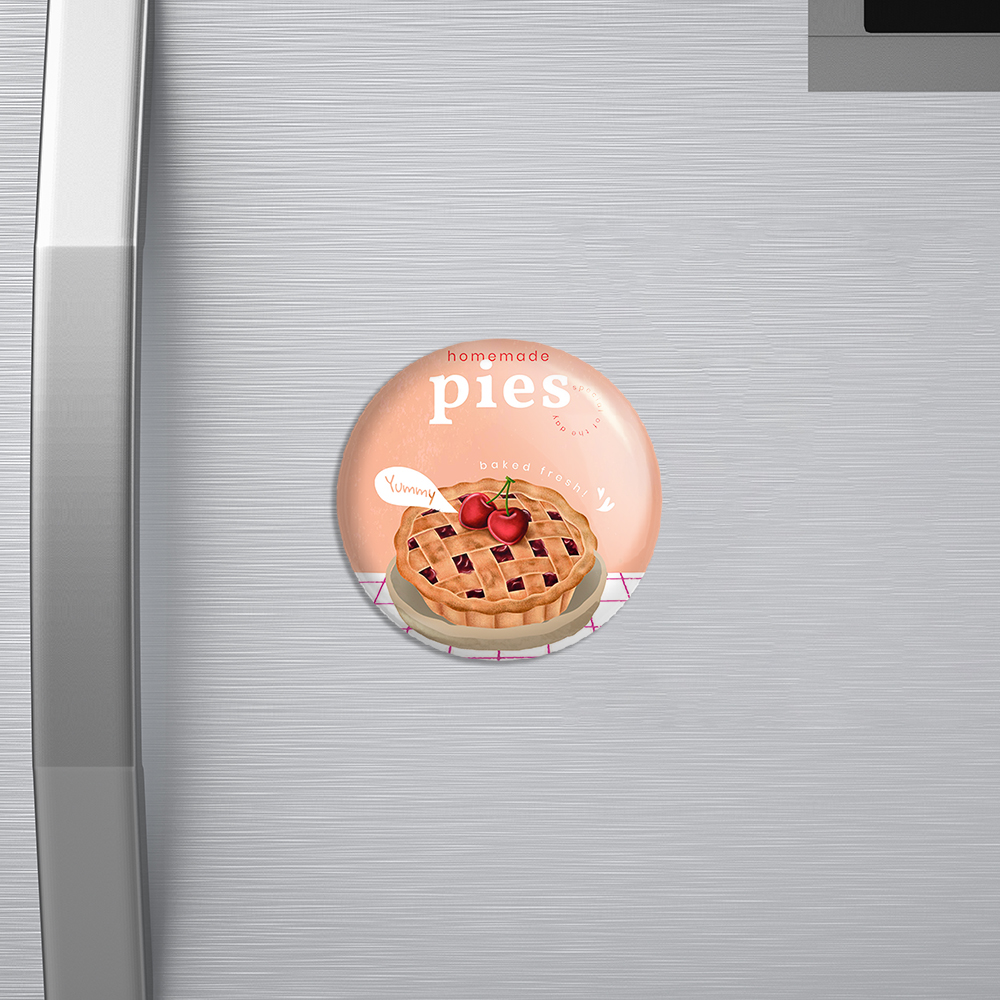 مگنت کیک و شیرینی پزی خندالو با روکش سلفون مات مخملی ضدخش و قطعه پشتی فلزی تولید شده است که آهنربای اتمی بکار برده شده در محصول، بصورت مخفی تعبیه شده ودیده نمی شود. ضمن اینکه گیرایی بسیار بالایی داشته و به هیچ عنوان از روی یخچال نمی افتد.