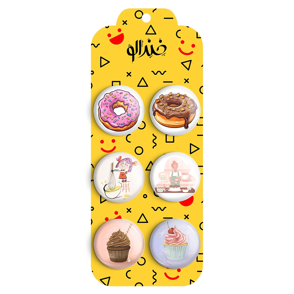پک 6 عددی مگنت یخچال خندالو طرح کیک و شیرینی پزی با روکش سلفون مات حرارتی مخملی ضدخش و قطعه پشتی فلزی تولید شده است که آهنربای اتمی بکار برده شده در محصول، بصورت مخفی تعبیه شده ودیده نمی شود. ضمن اینکه گیرایی بسیار بالایی داشته و به هیچ عنوان از روی یخچال نمی افتد. نکته مهم این است که به دلیل مخفی بودن آهنربا، هیچگونه خط و خش و زدگی بر روی یخچال ایجاد نخواهد شد.