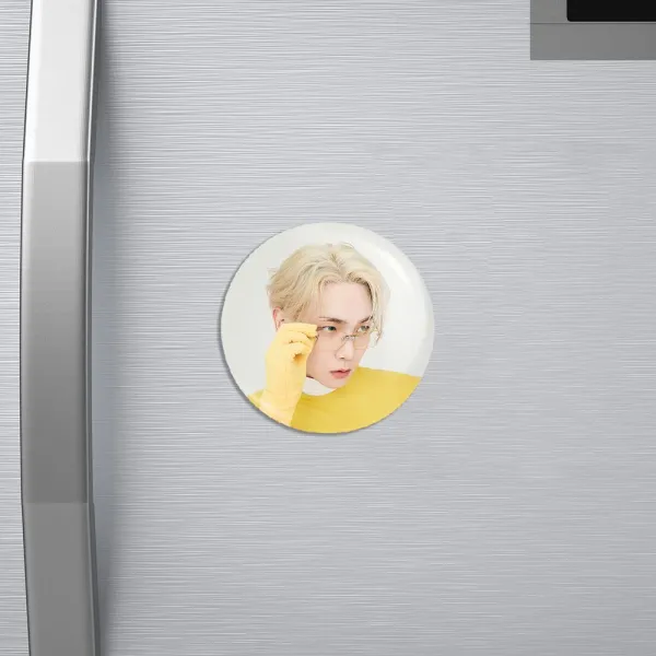 مگنت کی گروه شاینی Shinee خندالو با روکش سلفون مات مخملی ضدخش و قطعه پشتی فلزی تولید شده است که آهنربای اتمی بکار برده شده در محصول، بصورت مخفی تعبیه شده ودیده نمی شود. ضمن اینکه گیرایی بسیار بالایی داشته و به هیچ عنوان از روی یخچال نمی افتد.