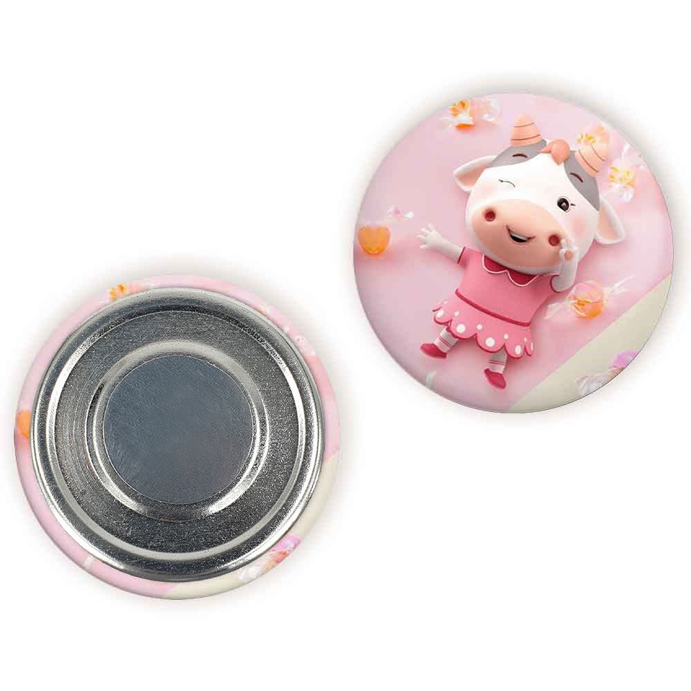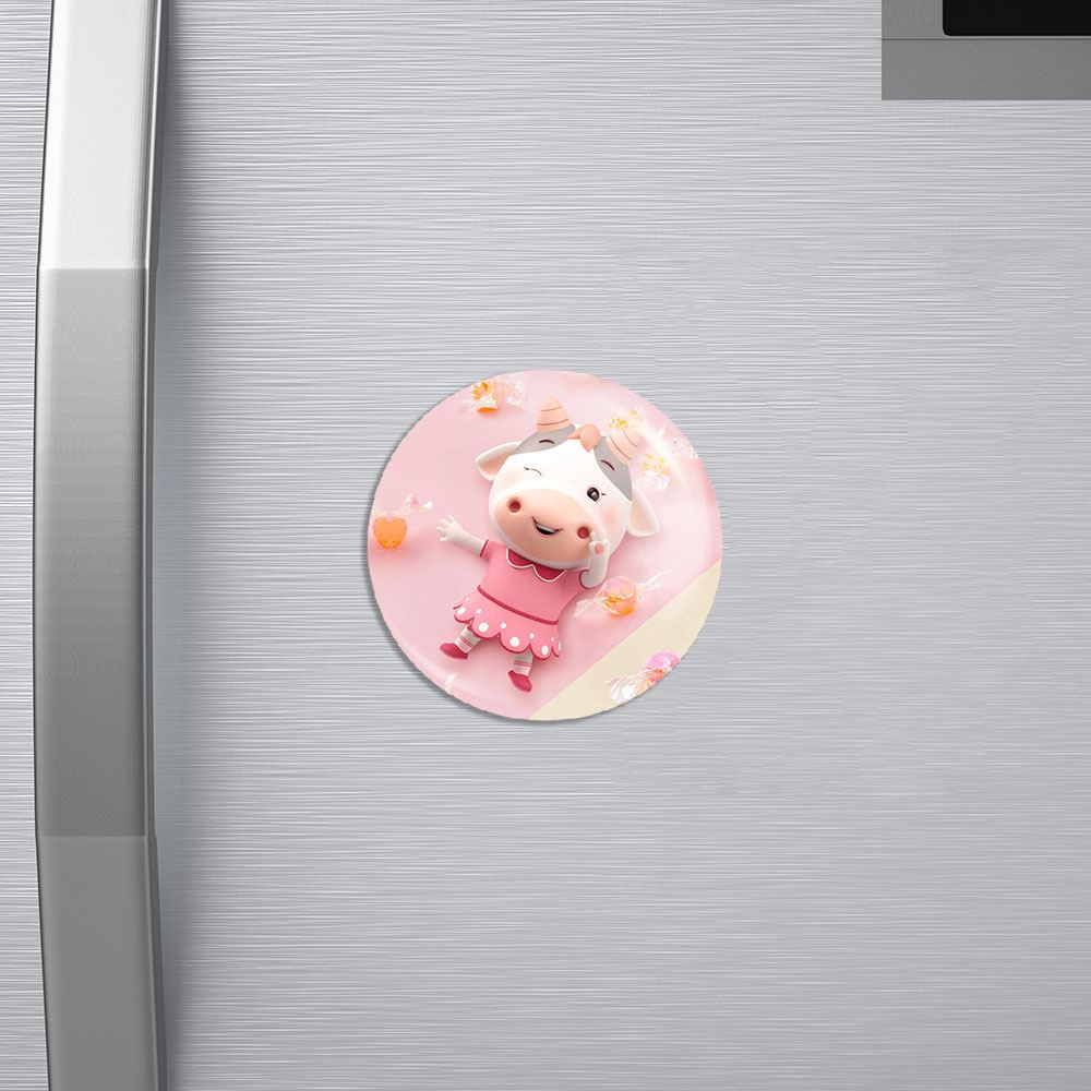 مگنت گاو خندالو با روکش سلفون مات مخملی ضدخش و قطعه پشتی فلزی تولید شده است که آهنربای اتمی بکار برده شده در محصول، بصورت مخفی تعبیه شده ودیده نمی شود. ضمن اینکه گیرایی بسیار بالایی داشته و به هیچ عنوان از روی یخچال نمی افتد.