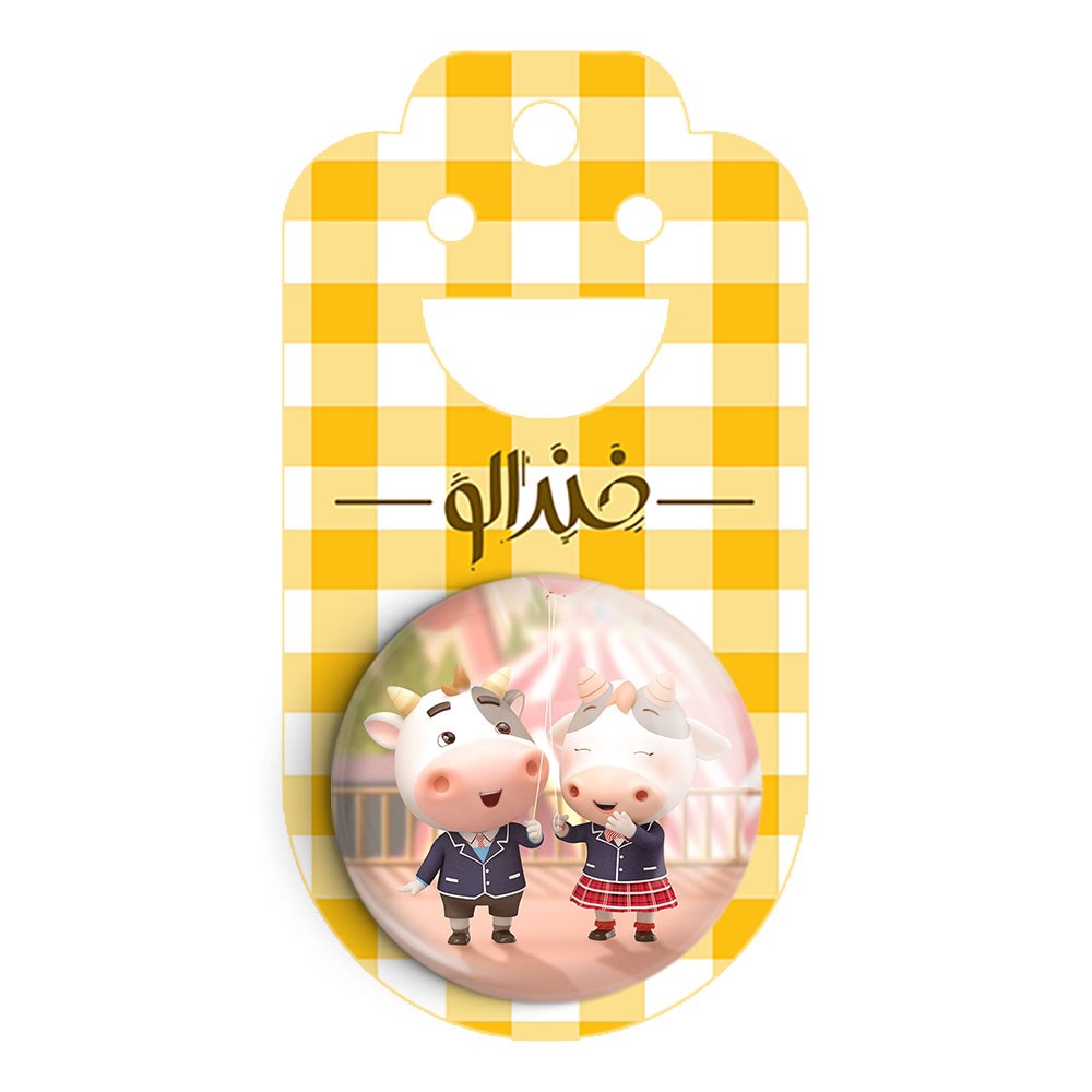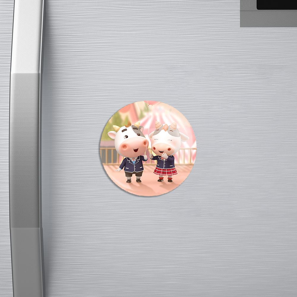 مگنت گاو خندالو با روکش سلفون مات مخملی ضدخش و قطعه پشتی فلزی تولید شده است که آهنربای اتمی بکار برده شده در محصول، بصورت مخفی تعبیه شده ودیده نمی شود. ضمن اینکه گیرایی بسیار بالایی داشته و به هیچ عنوان از روی یخچال نمی افتد.