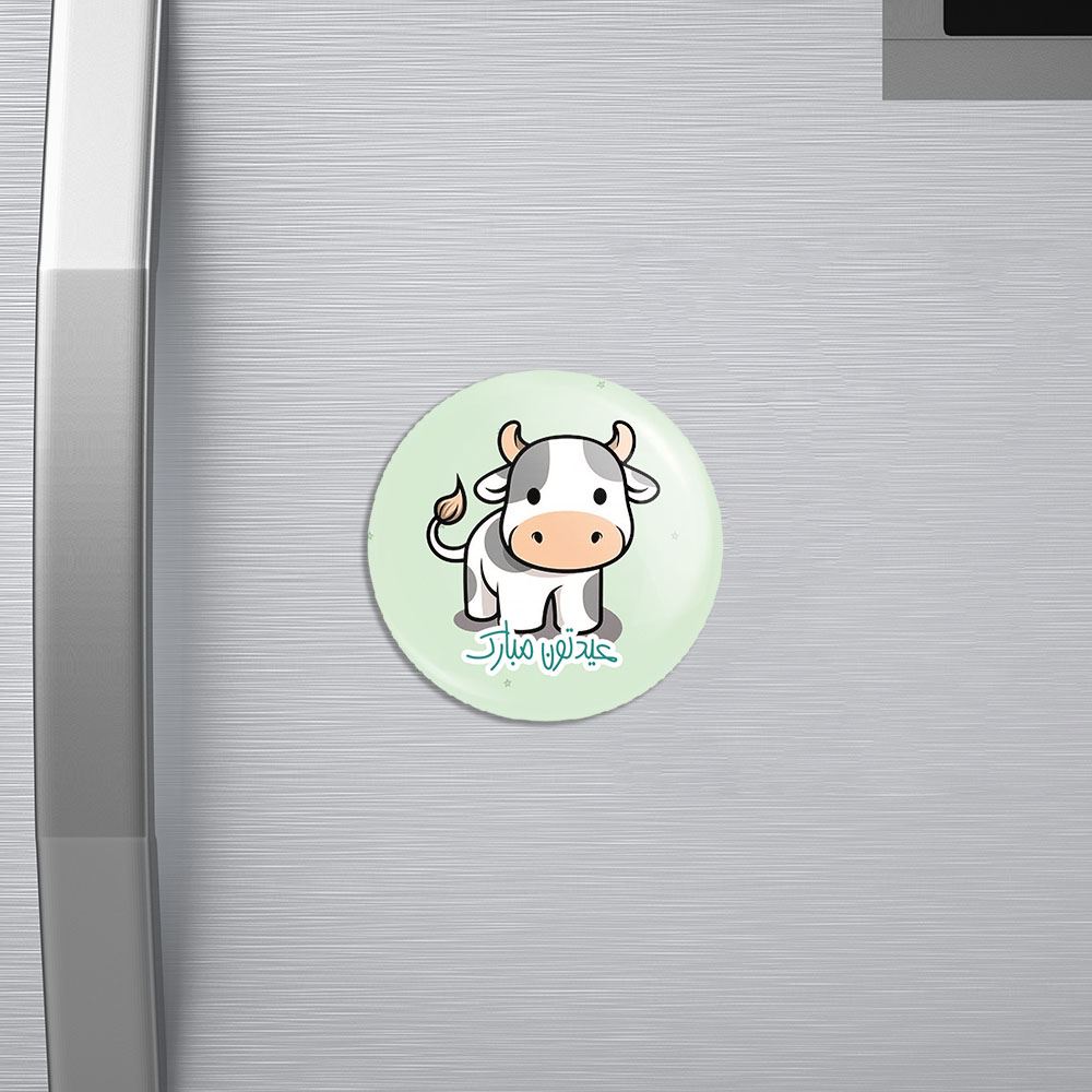 مگنت گاو خندالو با روکش سلفون مات مخملی ضدخش و قطعه پشتی فلزی تولید شده است که آهنربای اتمی بکار برده شده در محصول، بصورت مخفی تعبیه شده ودیده نمی شود. ضمن اینکه گیرایی بسیار بالایی داشته و به هیچ عنوان از روی یخچال نمی افتد.
