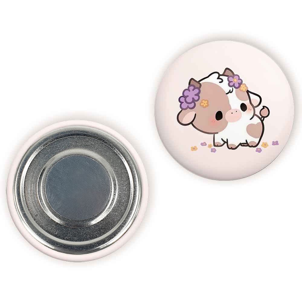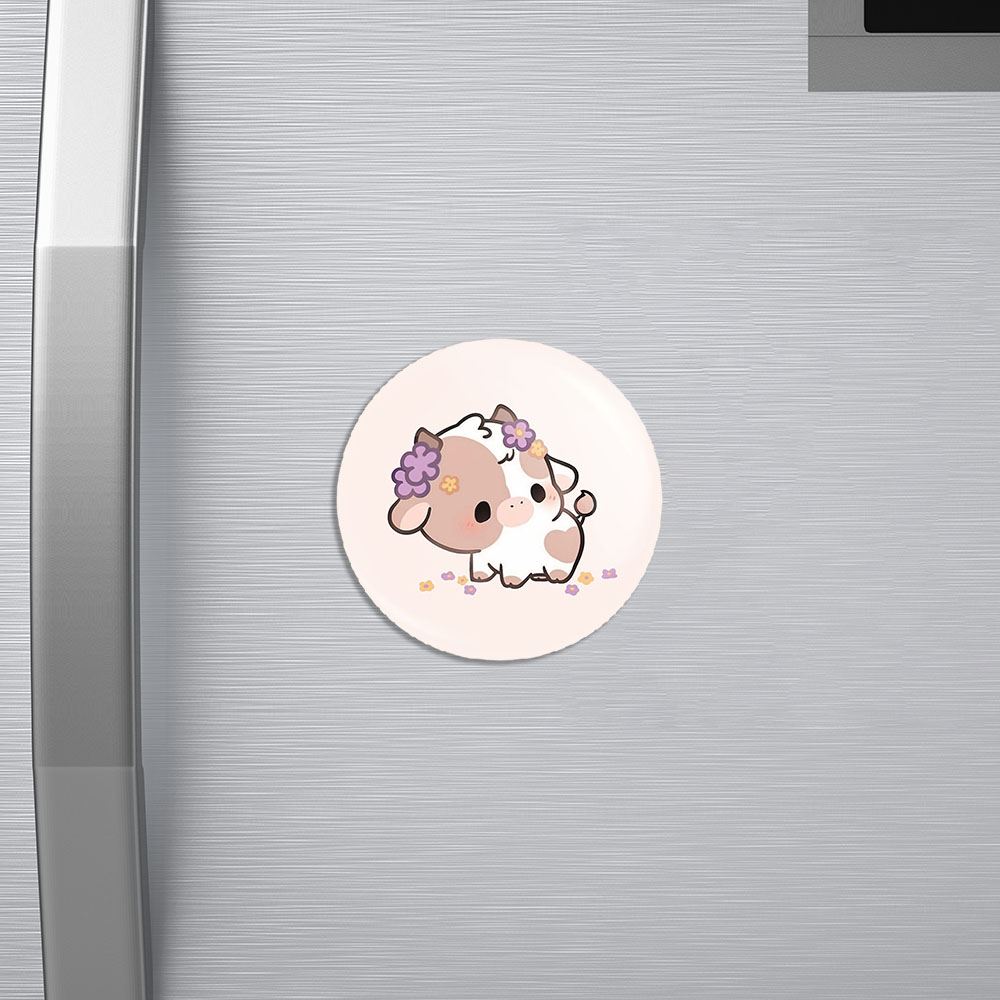 مگنت گاو خندالو با روکش سلفون مات مخملی ضدخش و قطعه پشتی فلزی تولید شده است که آهنربای اتمی بکار برده شده در محصول، بصورت مخفی تعبیه شده ودیده نمی شود. ضمن اینکه گیرایی بسیار بالایی داشته و به هیچ عنوان از روی یخچال نمی افتد.