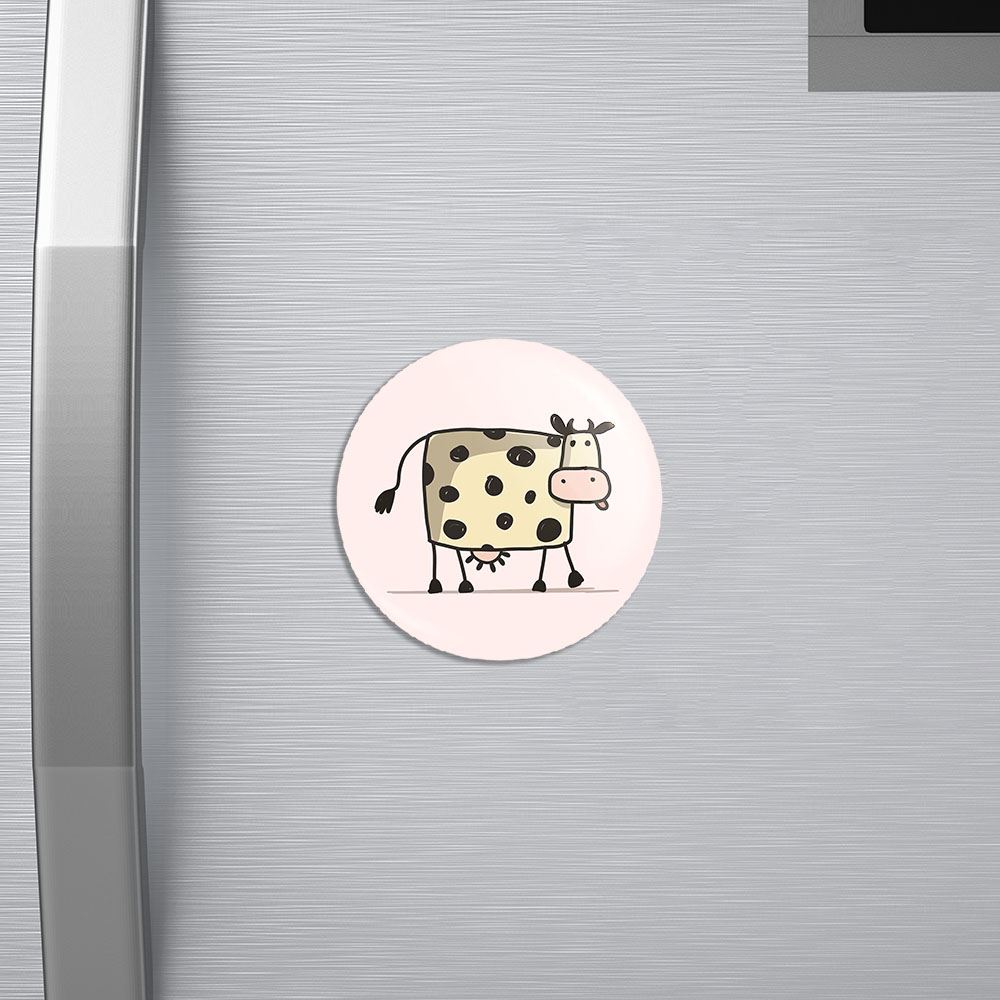 مگنت گاو خندالو با روکش سلفون مات مخملی ضدخش و قطعه پشتی فلزی تولید شده است که آهنربای اتمی بکار برده شده در محصول، بصورت مخفی تعبیه شده ودیده نمی شود. ضمن اینکه گیرایی بسیار بالایی داشته و به هیچ عنوان از روی یخچال نمی افتد.