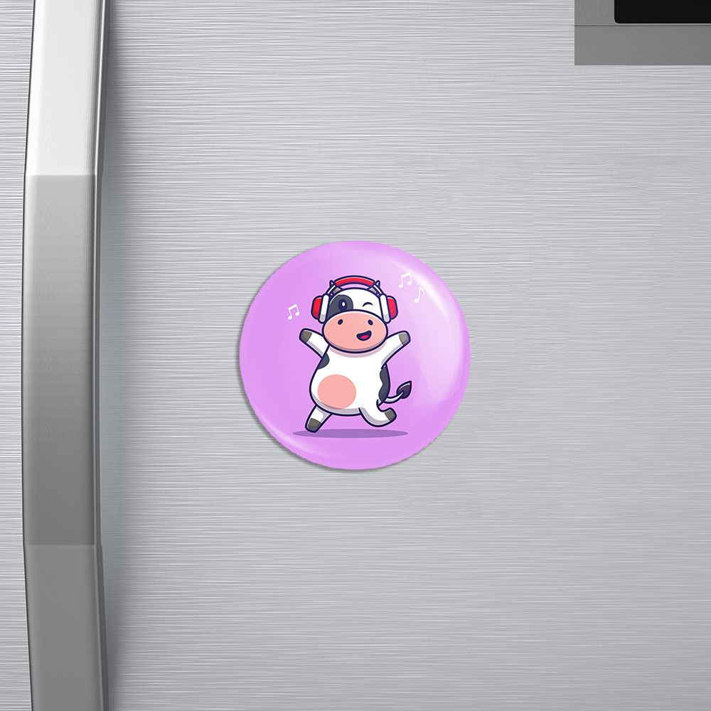مگنت گاو خندالو با روکش سلفون مات مخملی ضدخش و قطعه پشتی فلزی تولید شده است که آهنربای اتمی بکار برده شده در محصول، بصورت مخفی تعبیه شده ودیده نمی شود. ضمن اینکه گیرایی بسیار بالایی داشته و به هیچ عنوان از روی یخچال نمی افتد.