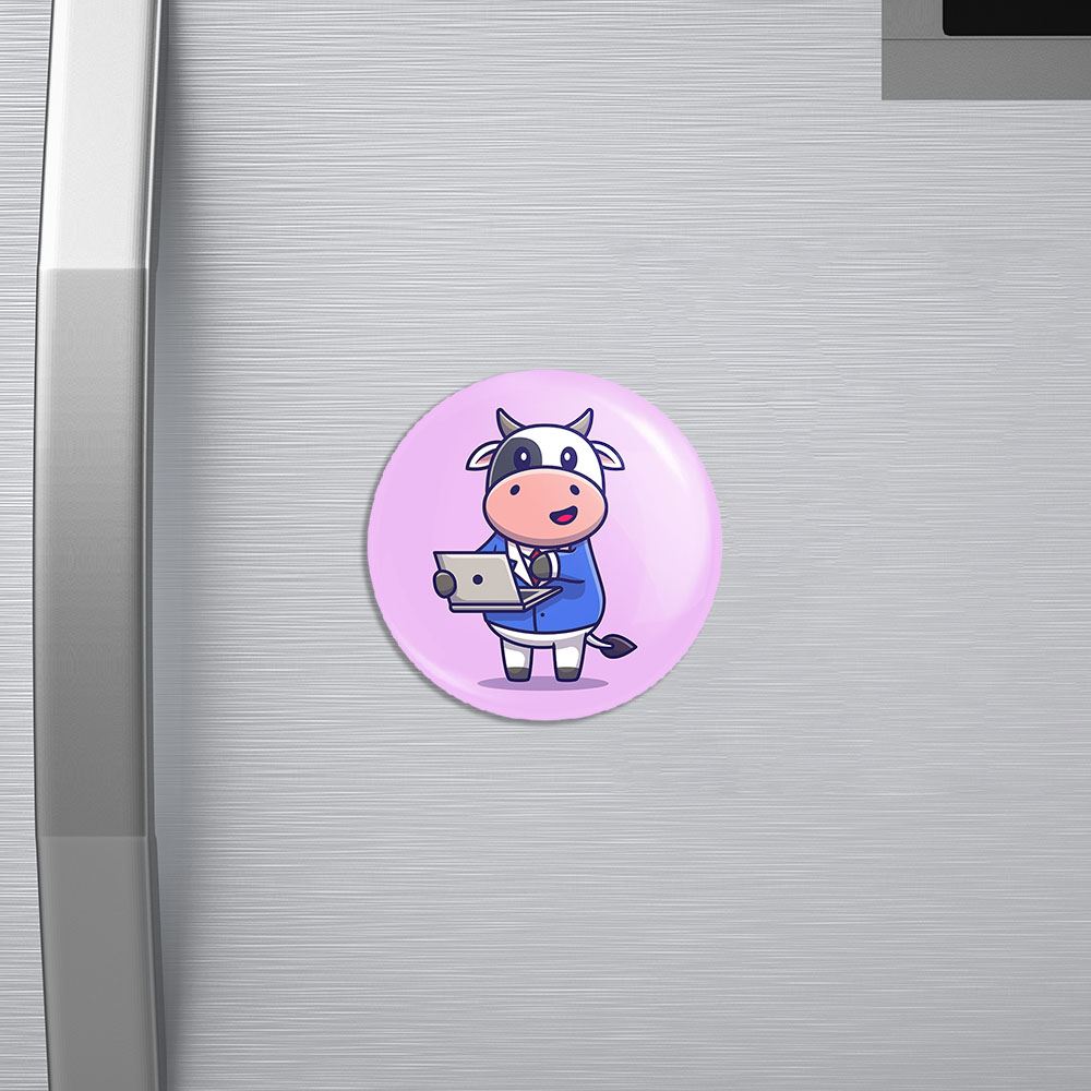 مگنت گاو خندالو با روکش سلفون مات مخملی ضدخش و قطعه پشتی فلزی تولید شده است که آهنربای اتمی بکار برده شده در محصول، بصورت مخفی تعبیه شده ودیده نمی شود. ضمن اینکه گیرایی بسیار بالایی داشته و به هیچ عنوان از روی یخچال نمی افتد.