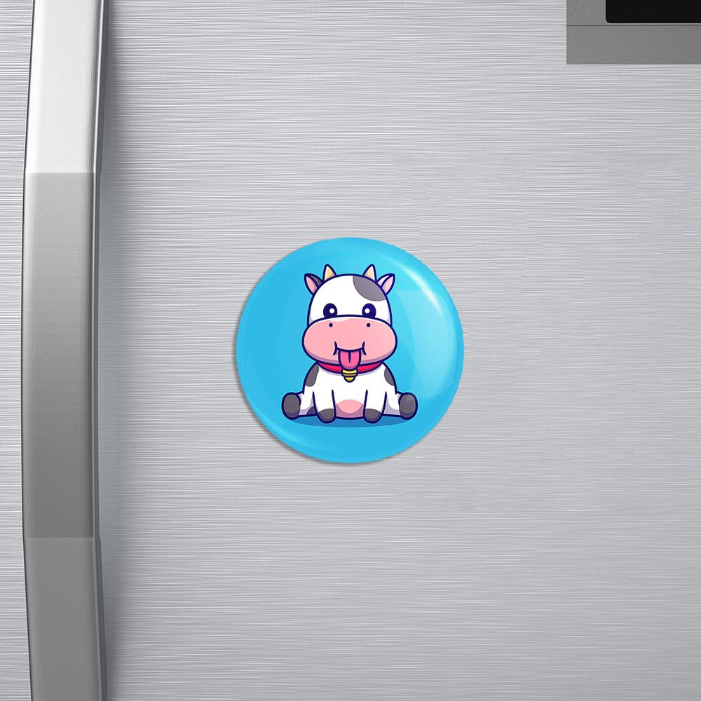 مگنت گاو خندالو با روکش سلفون مات مخملی ضدخش و قطعه پشتی فلزی تولید شده است که آهنربای اتمی بکار برده شده در محصول، بصورت مخفی تعبیه شده ودیده نمی شود. ضمن اینکه گیرایی بسیار بالایی داشته و به هیچ عنوان از روی یخچال نمی افتد.