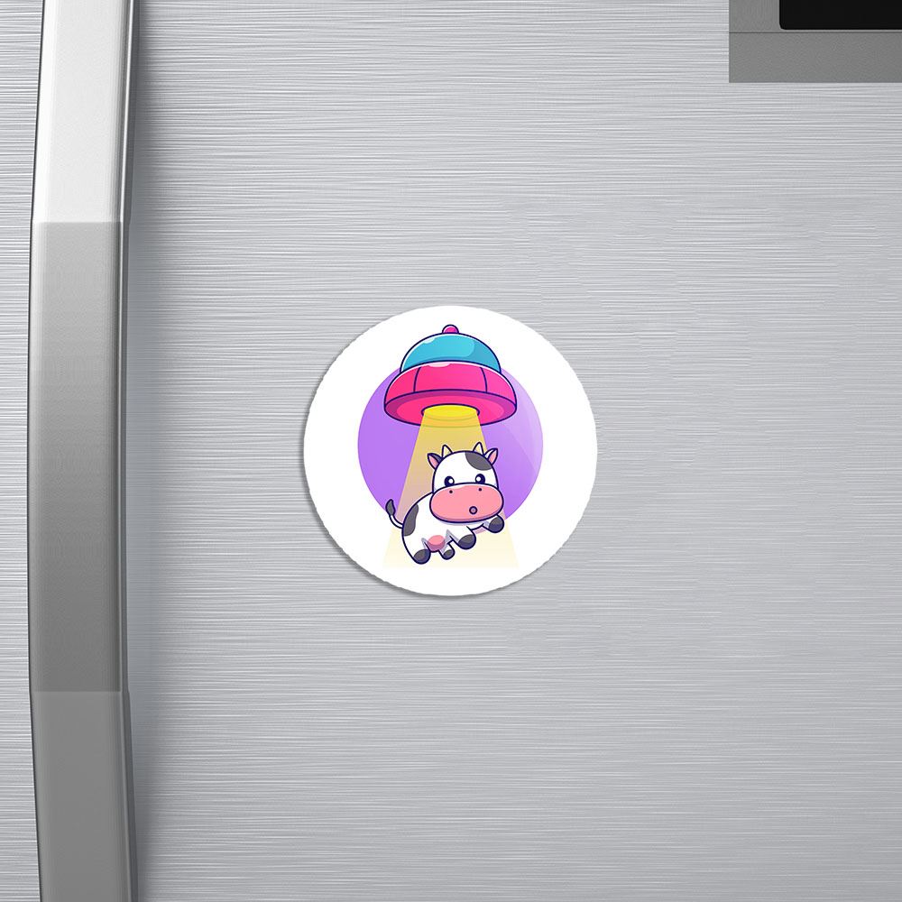 مگنت گاو خندالو با روکش سلفون مات مخملی ضدخش و قطعه پشتی فلزی تولید شده است که آهنربای اتمی بکار برده شده در محصول، بصورت مخفی تعبیه شده ودیده نمی شود. ضمن اینکه گیرایی بسیار بالایی داشته و به هیچ عنوان از روی یخچال نمی افتد.