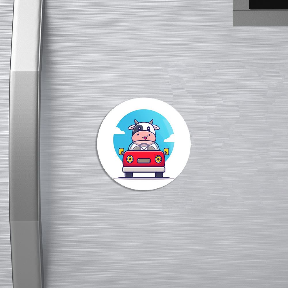 مگنت گاو خندالو با روکش سلفون مات مخملی ضدخش و قطعه پشتی فلزی تولید شده است که آهنربای اتمی بکار برده شده در محصول، بصورت مخفی تعبیه شده ودیده نمی شود. ضمن اینکه گیرایی بسیار بالایی داشته و به هیچ عنوان از روی یخچال نمی افتد.