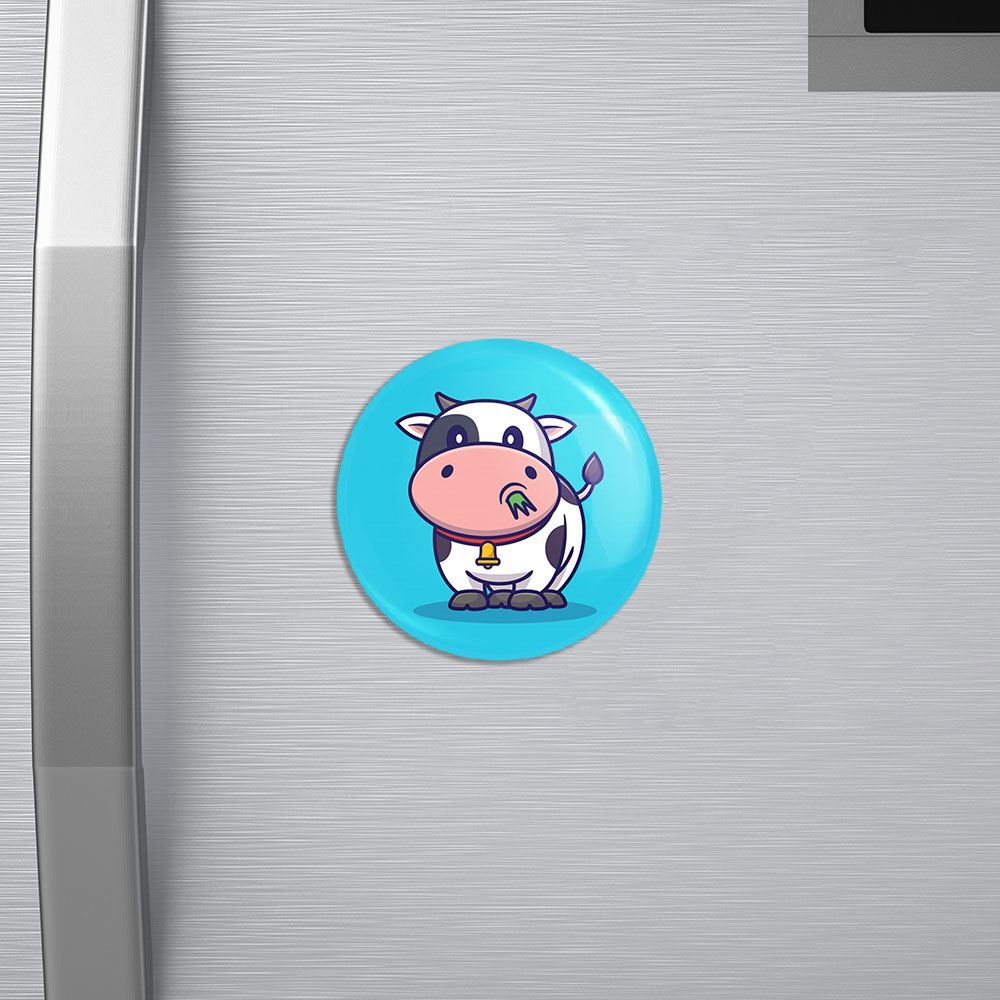 مگنت گاو خندالو با روکش سلفون مات مخملی ضدخش و قطعه پشتی فلزی تولید شده است که آهنربای اتمی بکار برده شده در محصول، بصورت مخفی تعبیه شده ودیده نمی شود. ضمن اینکه گیرایی بسیار بالایی داشته و به هیچ عنوان از روی یخچال نمی افتد.