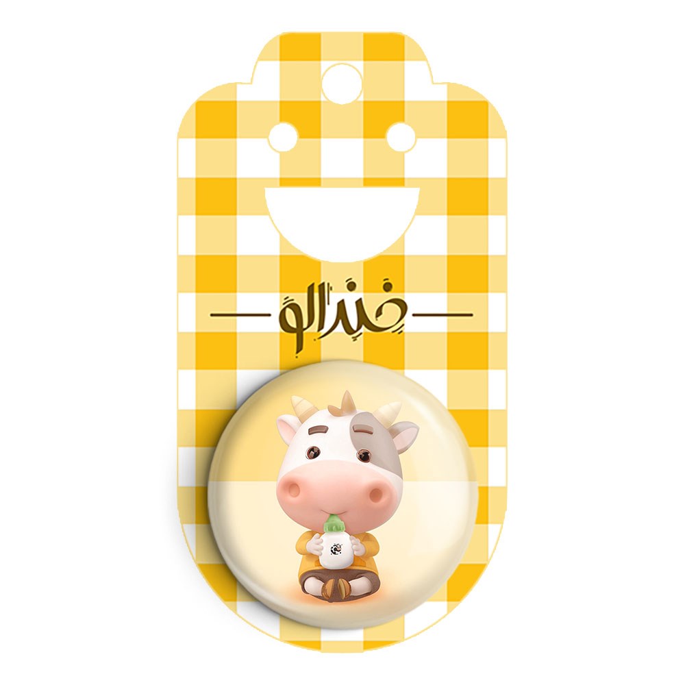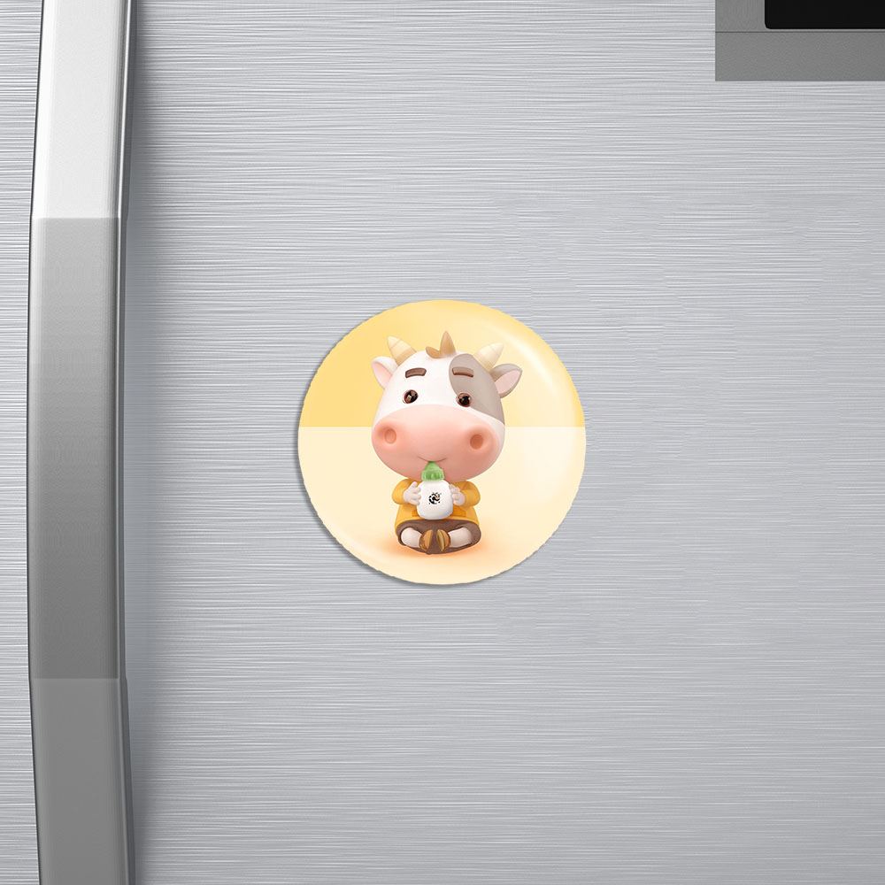 مگنت گاو خندالو با روکش سلفون مات مخملی ضدخش و قطعه پشتی فلزی تولید شده است که آهنربای اتمی بکار برده شده در محصول، بصورت مخفی تعبیه شده ودیده نمی شود. ضمن اینکه گیرایی بسیار بالایی داشته و به هیچ عنوان از روی یخچال نمی افتد.