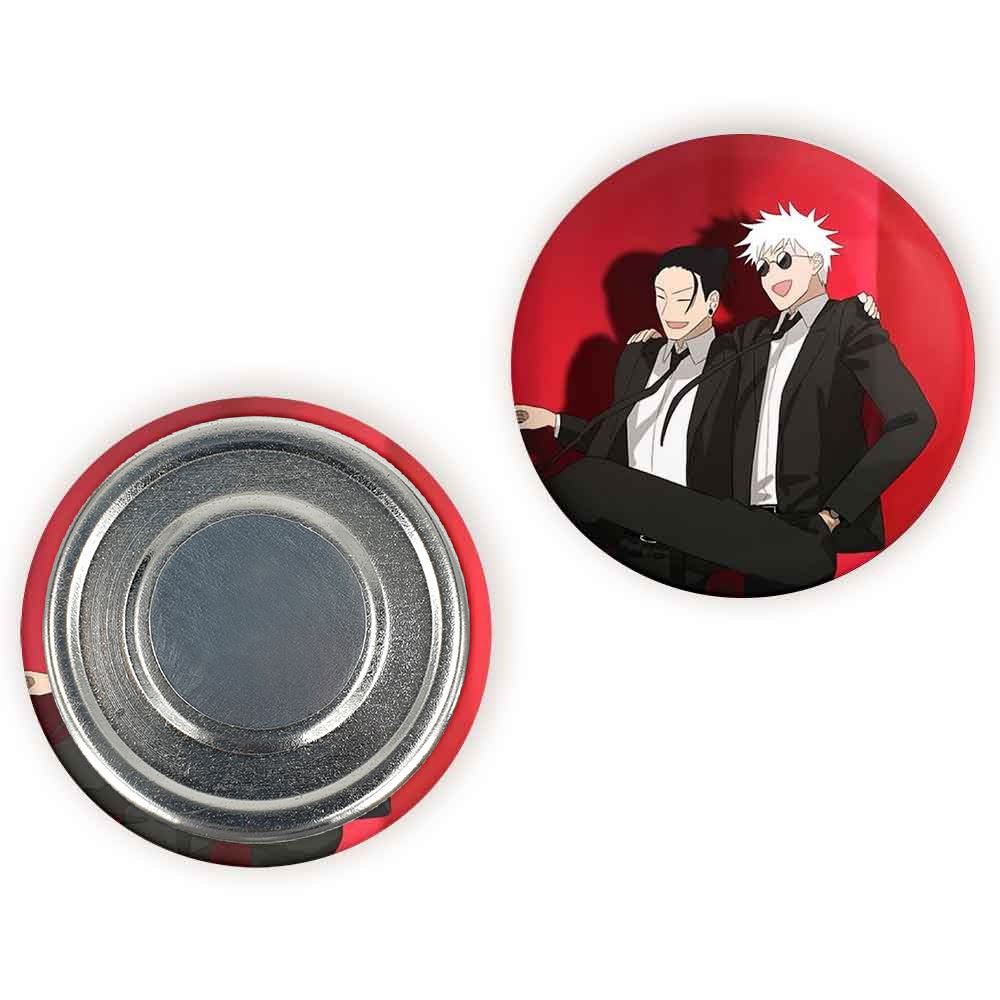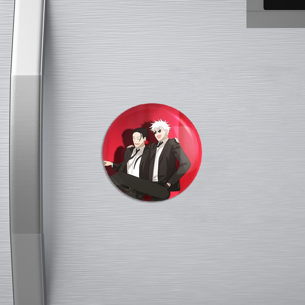 مگنت گتو و گوجو انیمه جوجوتسو کایزن خندالو با روکش سلفون مات مخملی ضدخش و قطعه پشتی فلزی تولید شده است که آهنربای اتمی بکار برده شده در محصول، بصورت مخفی تعبیه شده ودیده نمی شود. ضمن اینکه گیرایی بسیار بالایی داشته و به هیچ عنوان از روی یخچال نمی افتد.