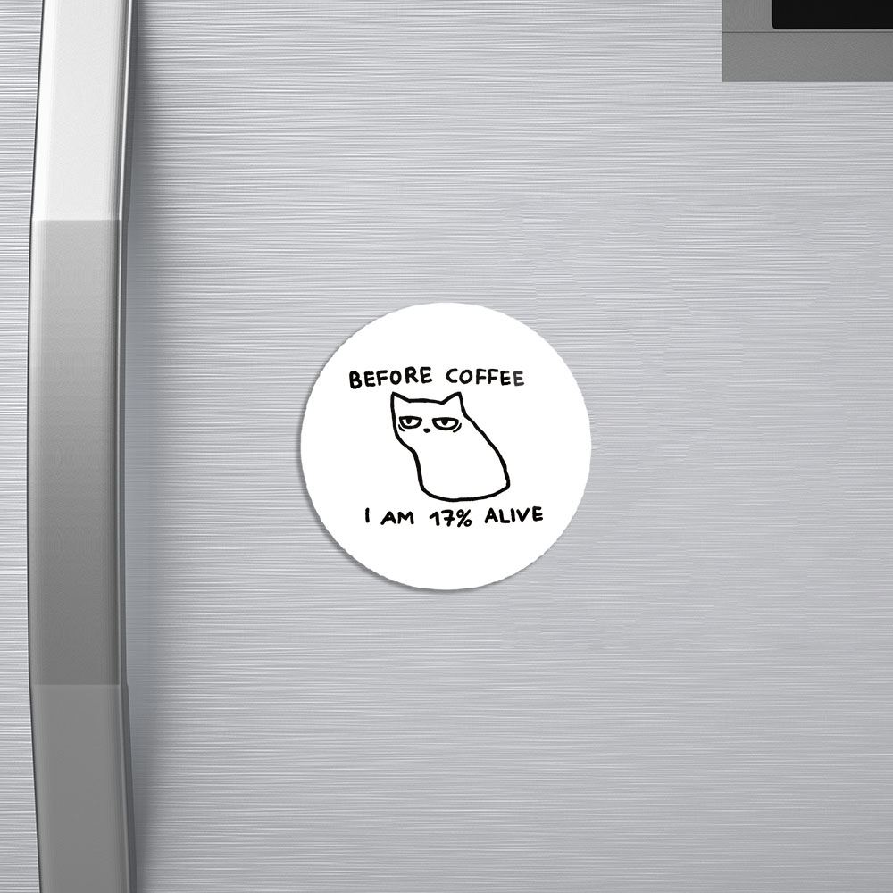 مگنت گربه و قهوه خندالو با روکش سلفون مات مخملی ضدخش و قطعه پشتی فلزی تولید شده است که آهنربای اتمی بکار برده شده در محصول، بصورت مخفی تعبیه شده ودیده نمی شود. ضمن اینکه گیرایی بسیار بالایی داشته و به هیچ عنوان از روی یخچال نمی افتد.