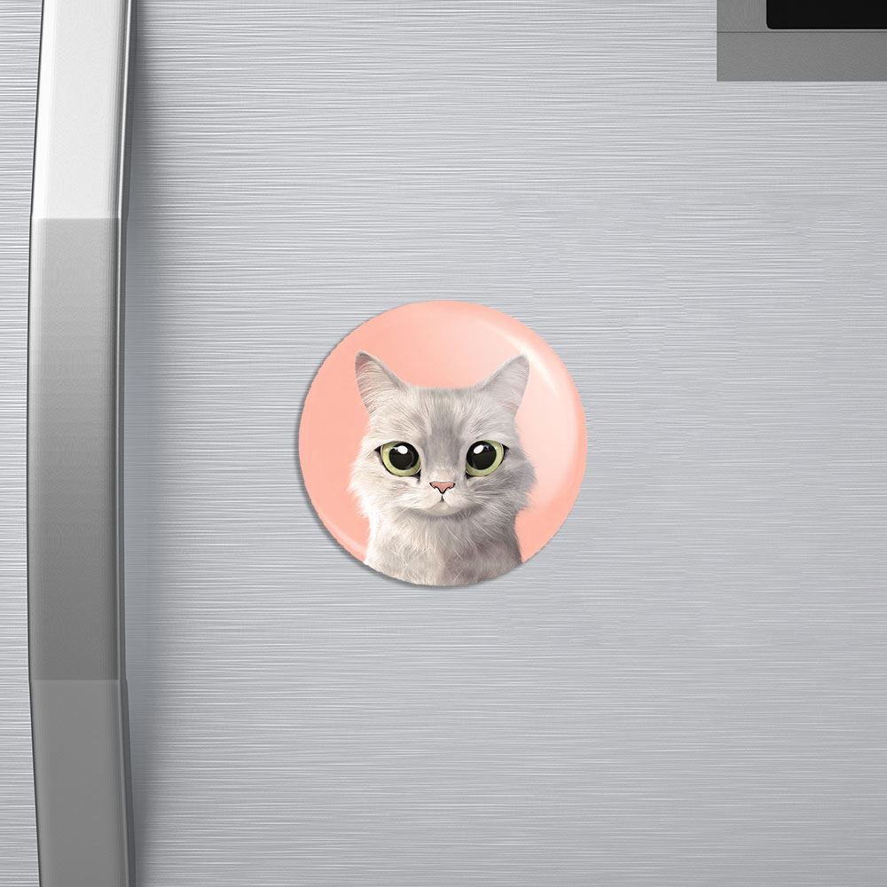 مگنت گربه خندالو با روکش سلفون مات مخملی ضدخش و قطعه پشتی فلزی تولید شده است که آهنربای اتمی بکار برده شده در محصول، بصورت مخفی تعبیه شده ودیده نمی شود. ضمن اینکه گیرایی بسیار بالایی داشته و به هیچ عنوان از روی یخچال نمی افتد.
