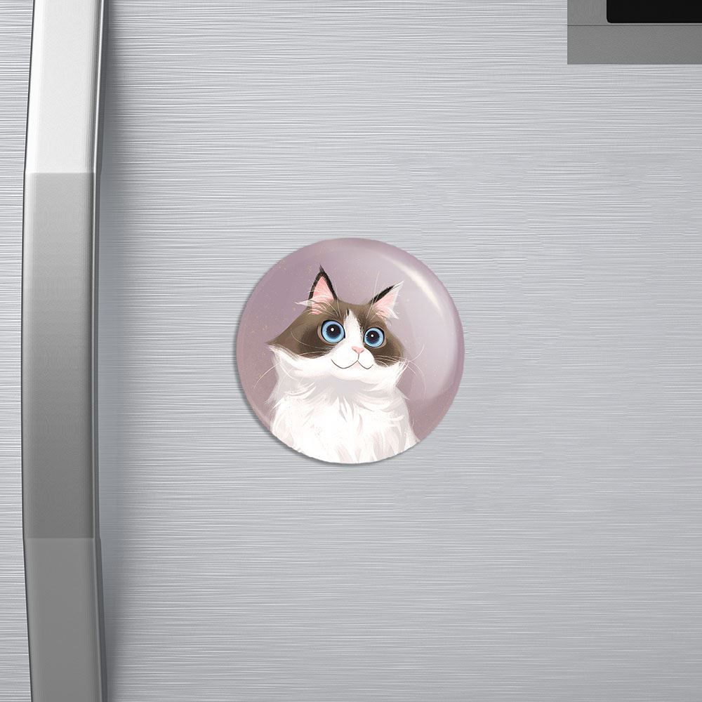 مگنت گربه خندالو با روکش سلفون مات مخملی ضدخش و قطعه پشتی فلزی تولید شده است که آهنربای اتمی بکار برده شده در محصول، بصورت مخفی تعبیه شده ودیده نمی شود. ضمن اینکه گیرایی بسیار بالایی داشته و به هیچ عنوان از روی یخچال نمی افتد.