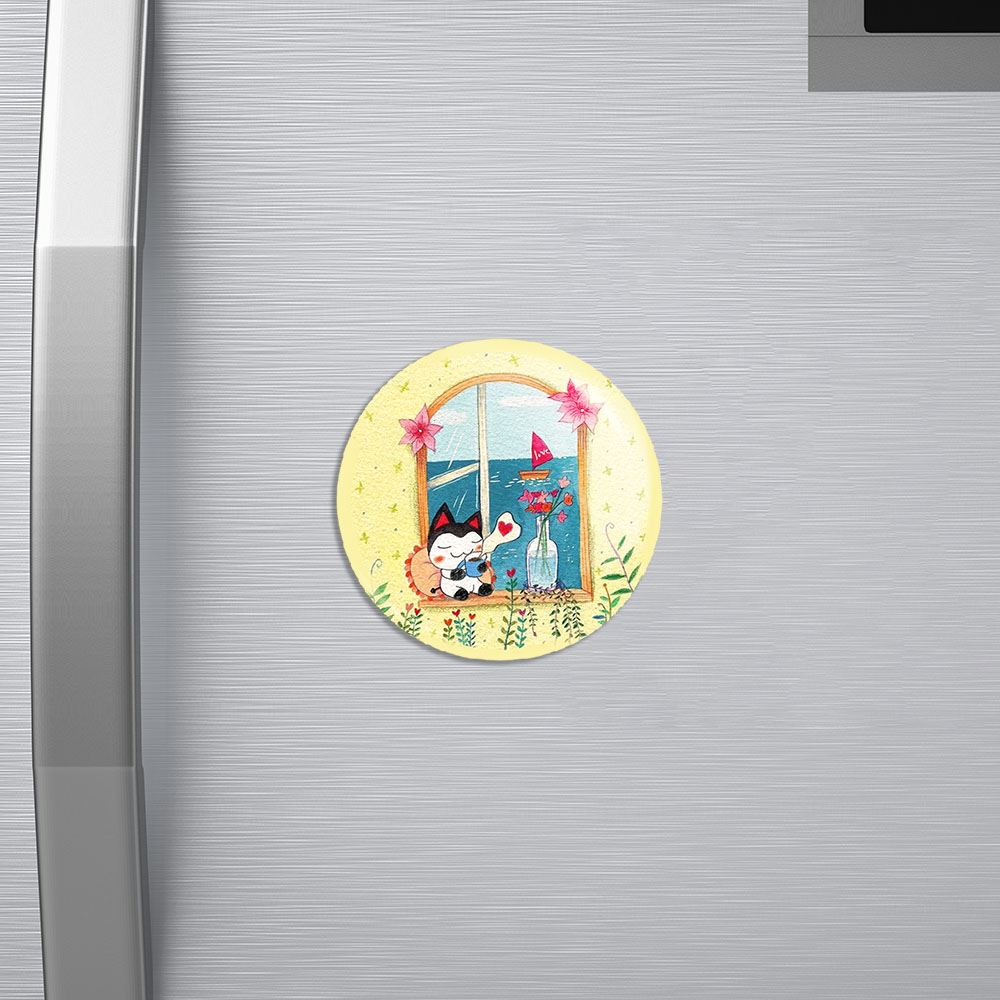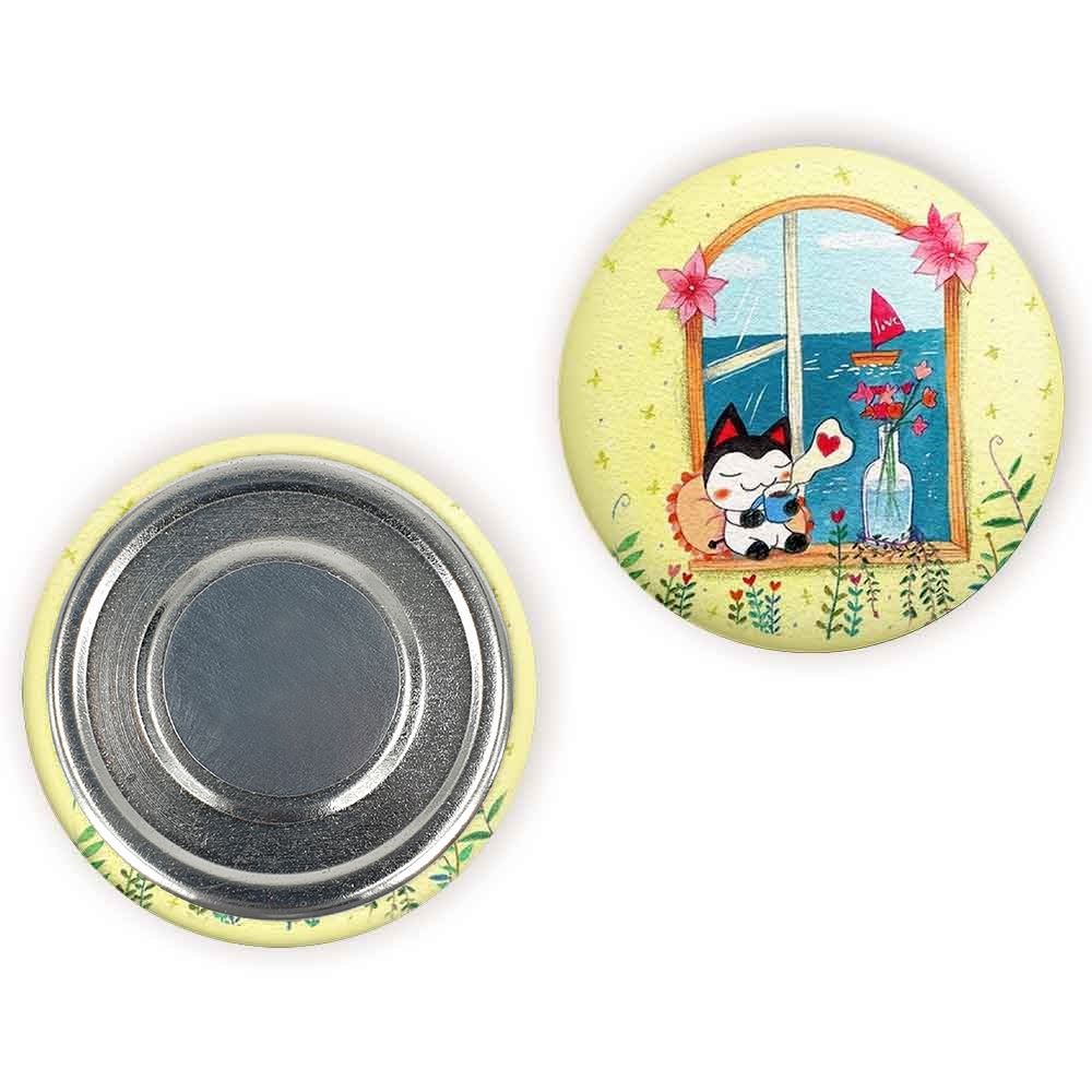 مگنت گربه خندالو با روکش سلفون مات مخملی ضدخش و قطعه پشتی فلزی تولید شده است که آهنربای اتمی بکار برده شده در محصول، بصورت مخفی تعبیه شده ودیده نمی شود. ضمن اینکه گیرایی بسیار بالایی داشته و به هیچ عنوان از روی یخچال نمی افتد.