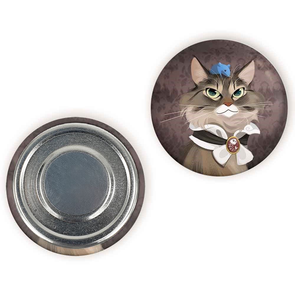 مگنت گربه خندالو با روکش سلفون مات مخملی ضدخش و قطعه پشتی فلزی تولید شده است که آهنربای اتمی بکار برده شده در محصول، بصورت مخفی تعبیه شده ودیده نمی شود. ضمن اینکه گیرایی بسیار بالایی داشته و به هیچ عنوان از روی یخچال نمی افتد.
