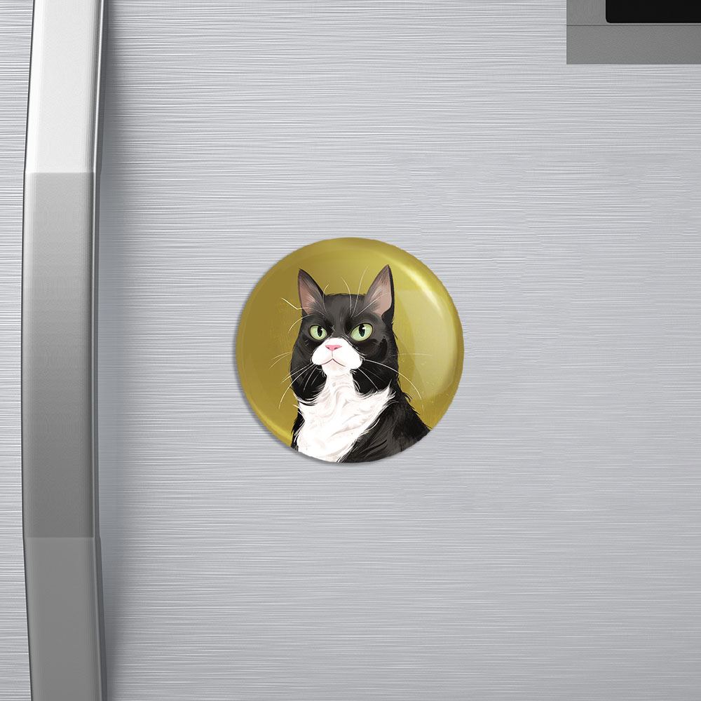 مگنت گربه خندالو با روکش سلفون مات مخملی ضدخش و قطعه پشتی فلزی تولید شده است که آهنربای اتمی بکار برده شده در محصول، بصورت مخفی تعبیه شده ودیده نمی شود. ضمن اینکه گیرایی بسیار بالایی داشته و به هیچ عنوان از روی یخچال نمی افتد.