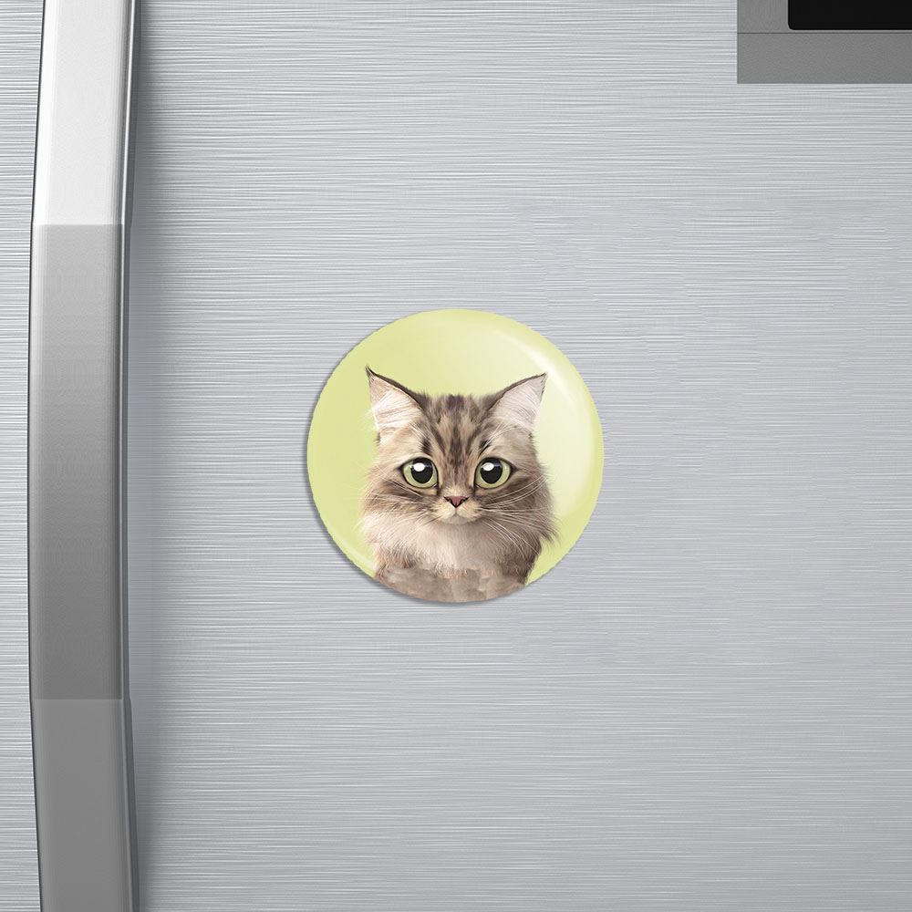 مگنت گربه خندالو با روکش سلفون مات مخملی ضدخش و قطعه پشتی فلزی تولید شده است که آهنربای اتمی بکار برده شده در محصول، بصورت مخفی تعبیه شده ودیده نمی شود. ضمن اینکه گیرایی بسیار بالایی داشته و به هیچ عنوان از روی یخچال نمی افتد.