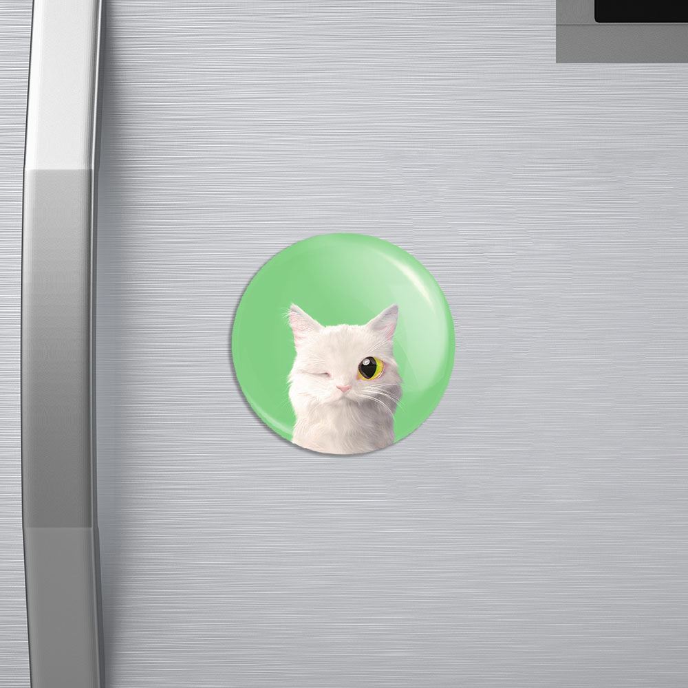 مگنت گربه خندالو با روکش سلفون مات مخملی ضدخش و قطعه پشتی فلزی تولید شده است که آهنربای اتمی بکار برده شده در محصول، بصورت مخفی تعبیه شده ودیده نمی شود. ضمن اینکه گیرایی بسیار بالایی داشته و به هیچ عنوان از روی یخچال نمی افتد.