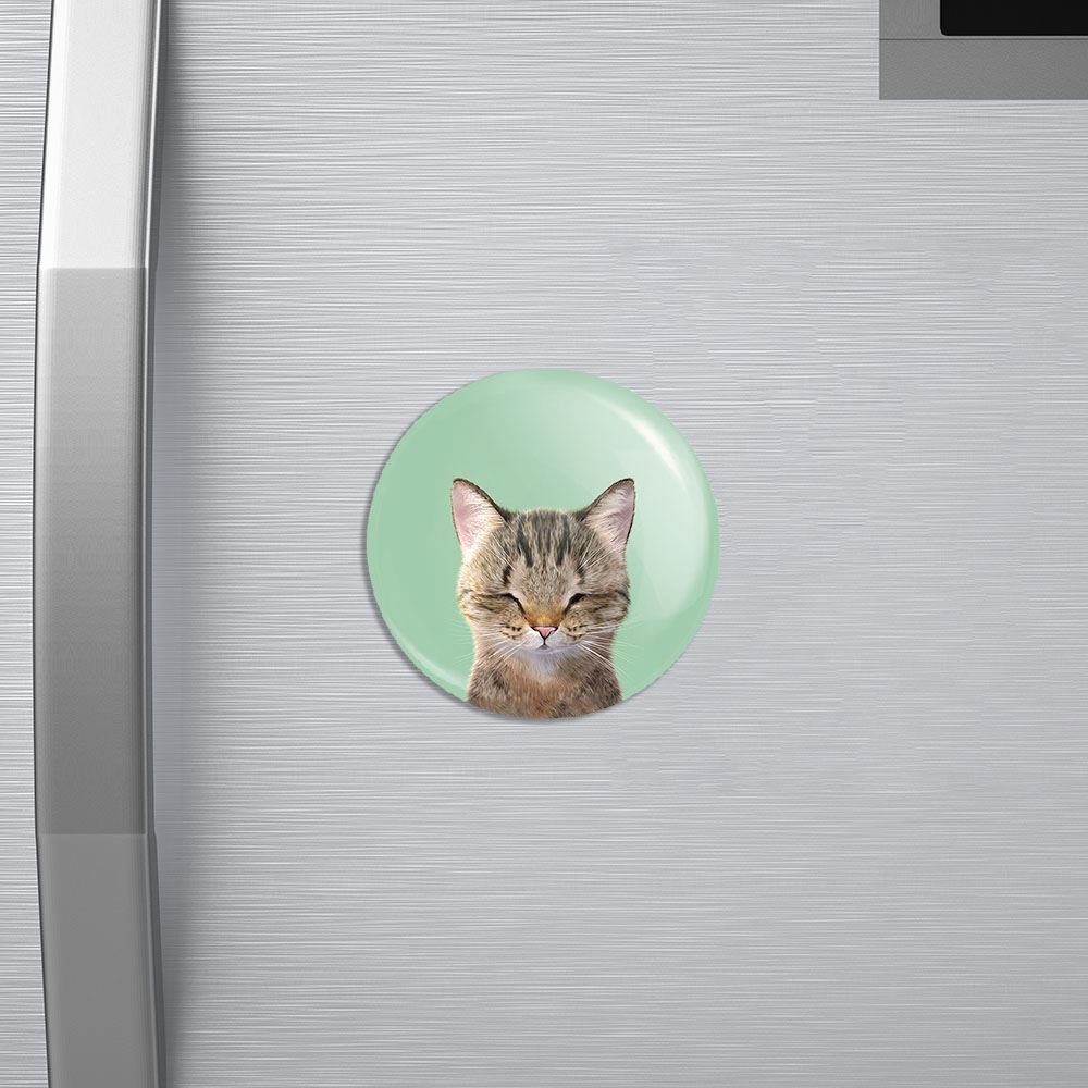 مگنت گربه خندالو با روکش سلفون مات مخملی ضدخش و قطعه پشتی فلزی تولید شده است که آهنربای اتمی بکار برده شده در محصول، بصورت مخفی تعبیه شده ودیده نمی شود. ضمن اینکه گیرایی بسیار بالایی داشته و به هیچ عنوان از روی یخچال نمی افتد.