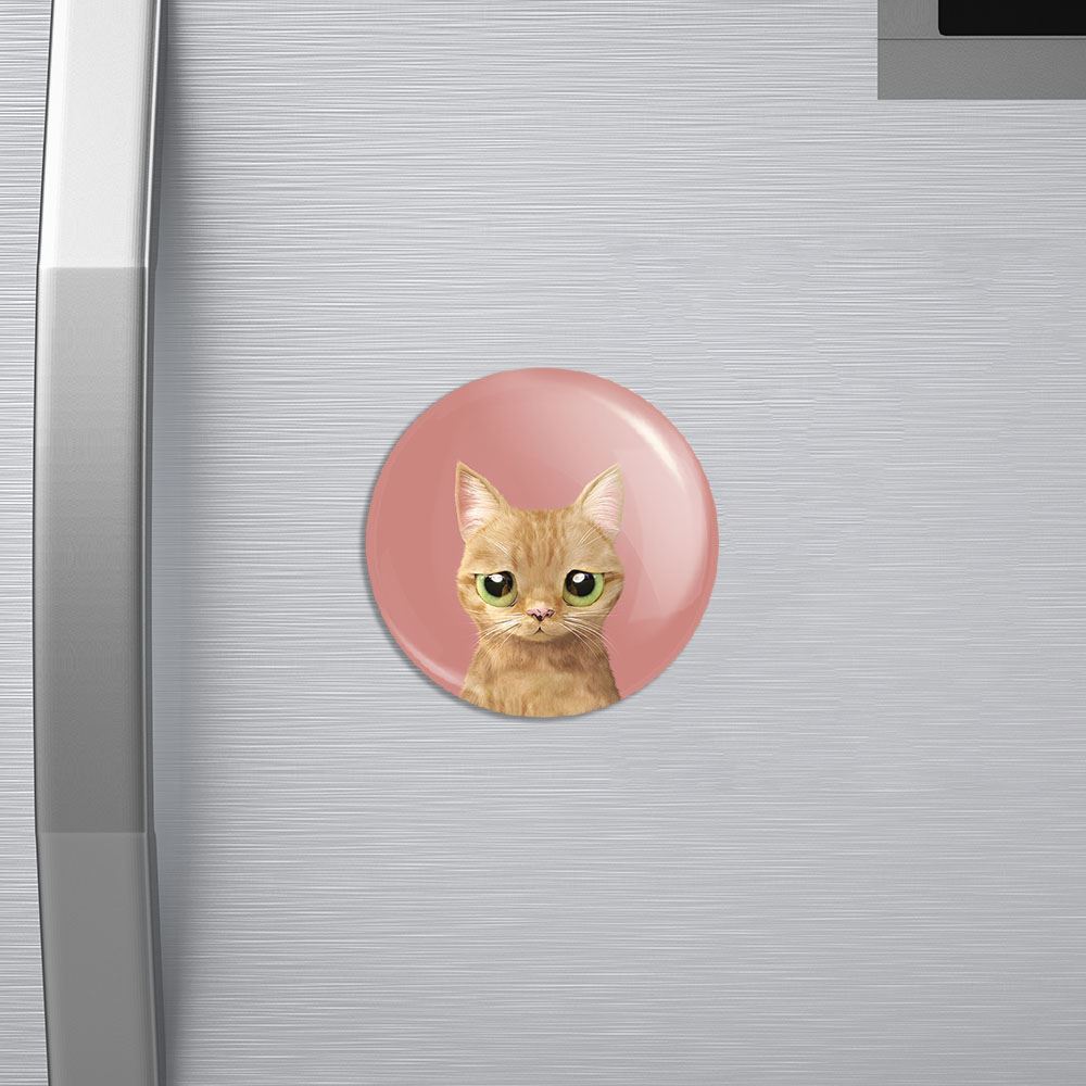 مگنت گربه خندالو با روکش سلفون مات مخملی ضدخش و قطعه پشتی فلزی تولید شده است که آهنربای اتمی بکار برده شده در محصول، بصورت مخفی تعبیه شده ودیده نمی شود. ضمن اینکه گیرایی بسیار بالایی داشته و به هیچ عنوان از روی یخچال نمی افتد.