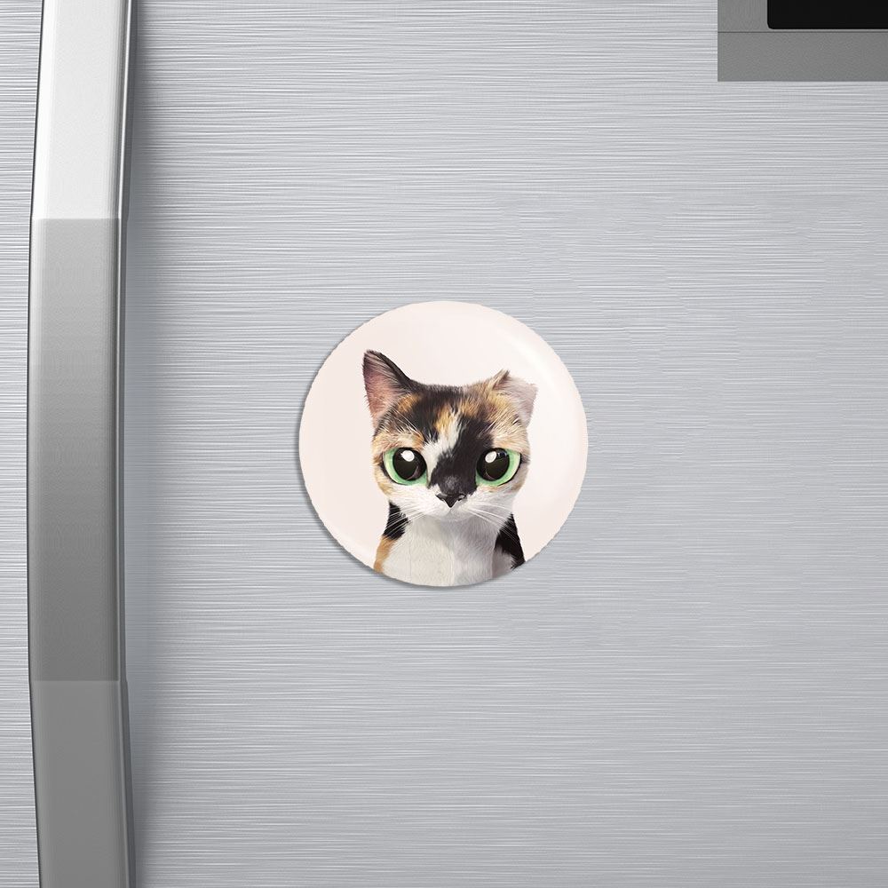 مگنت گربه خندالو با روکش سلفون مات مخملی ضدخش و قطعه پشتی فلزی تولید شده است که آهنربای اتمی بکار برده شده در محصول، بصورت مخفی تعبیه شده ودیده نمی شود. ضمن اینکه گیرایی بسیار بالایی داشته و به هیچ عنوان از روی یخچال نمی افتد.