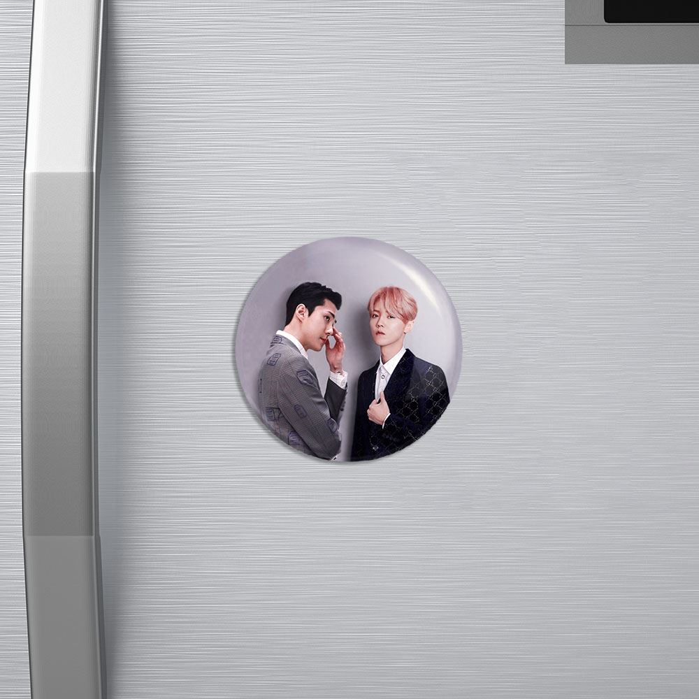 مگنت گروه اکسو EXO خندالو با روکش سلفون مات مخملی ضدخش و قطعه پشتی فلزی تولید شده است که آهنربای اتمی بکار برده شده در محصول، بصورت مخفی تعبیه شده ودیده نمی شود. ضمن اینکه گیرایی بسیار بالایی داشته و به هیچ عنوان از روی یخچال نمی افتد.