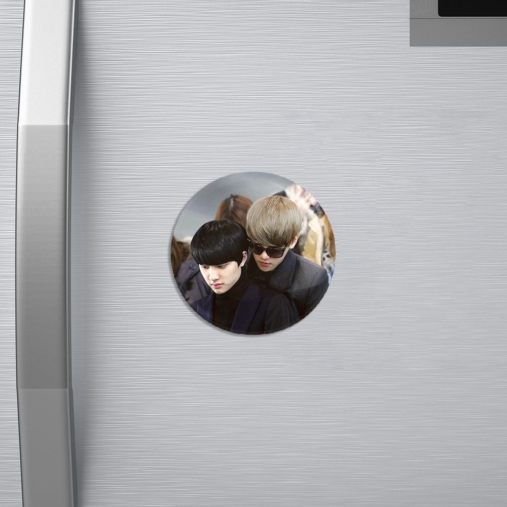 مگنت گروه اکسو EXO خندالو با روکش سلفون مات مخملی ضدخش و قطعه پشتی فلزی تولید شده است که آهنربای اتمی بکار برده شده در محصول، بصورت مخفی تعبیه شده ودیده نمی شود. ضمن اینکه گیرایی بسیار بالایی داشته و به هیچ عنوان از روی یخچال نمی افتد.